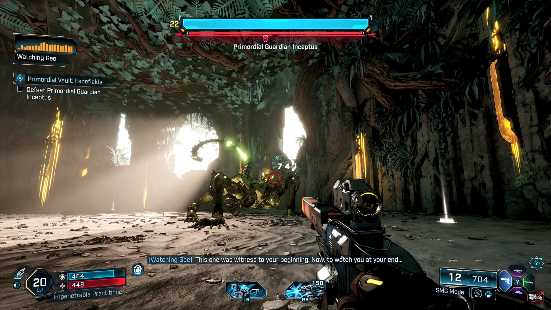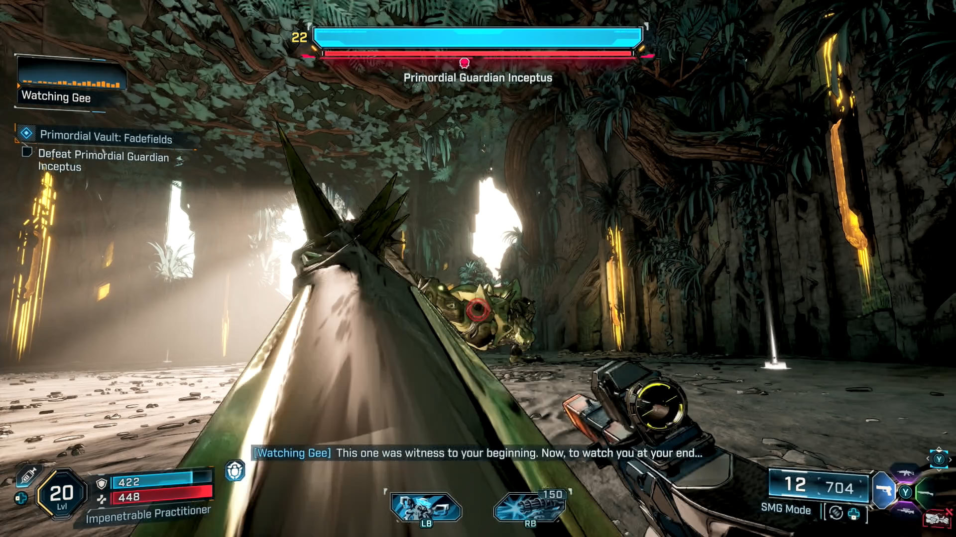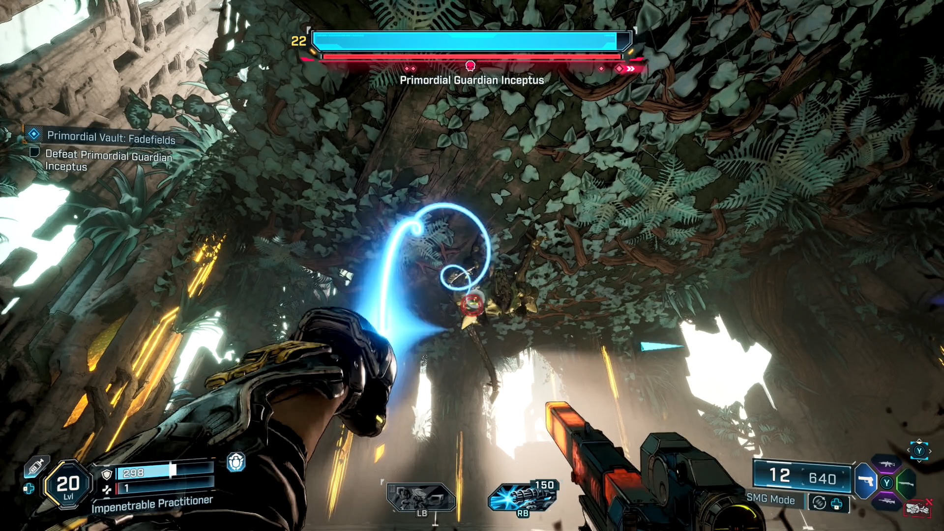 在征服一系列孤島戰場之後,最終就會來到頭目戰的環節。本寶庫任務的頭目是名為「Inceptus(拉丁文的 “開端” 之意)」的怪物,融合了節肢動物與猿猴的特徵,有著能靈活攀抓的長臂,以及能遠距離突刺與揮砍的兩條多節長尾,三不五時還會放出會爆炸的漂浮圓球,需要靠這次新加入的爪鉤來阻止頭目施放。