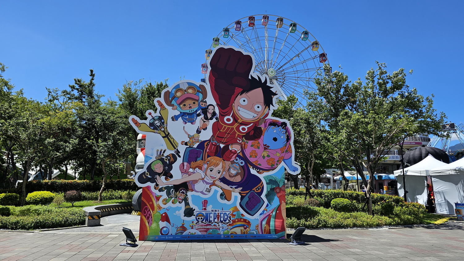 航海王》「未來島篇章」五米高魯夫與喬巴巨型氣偶,正式現身臺北市立兒童新樂園。兩座巨偶分別設置於園區 1F 戶外區域與「