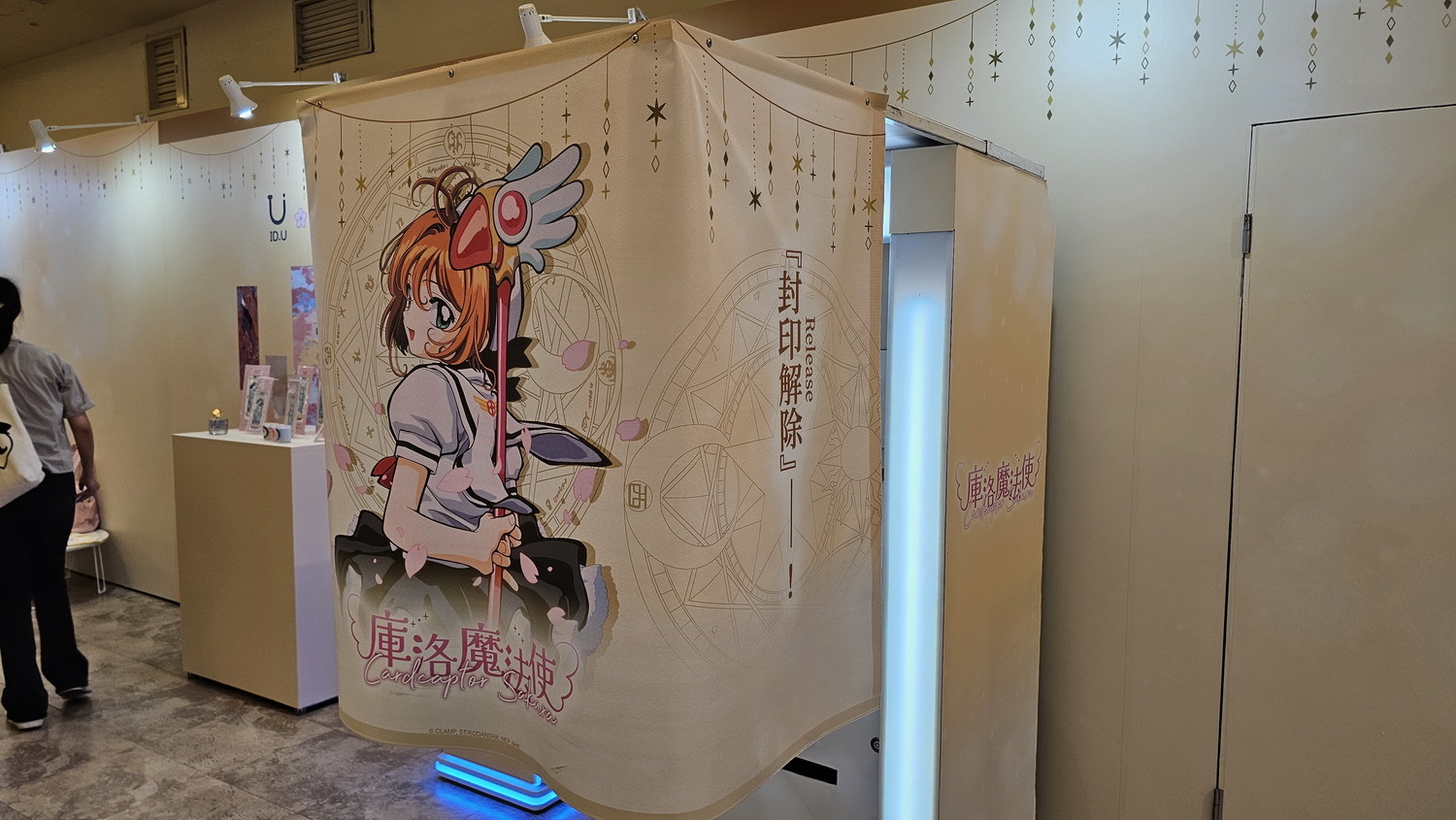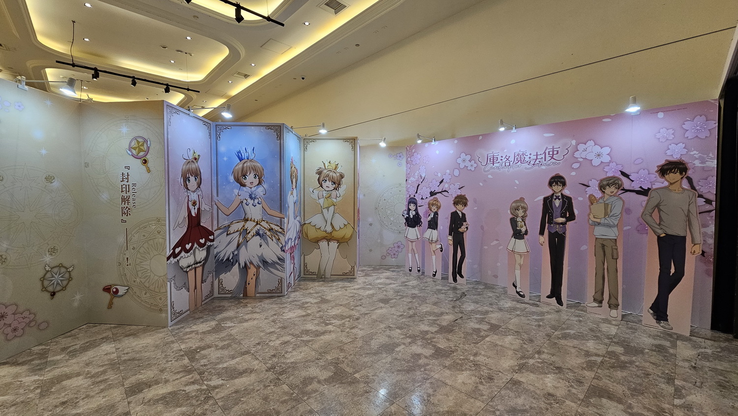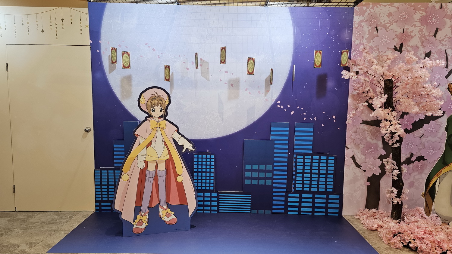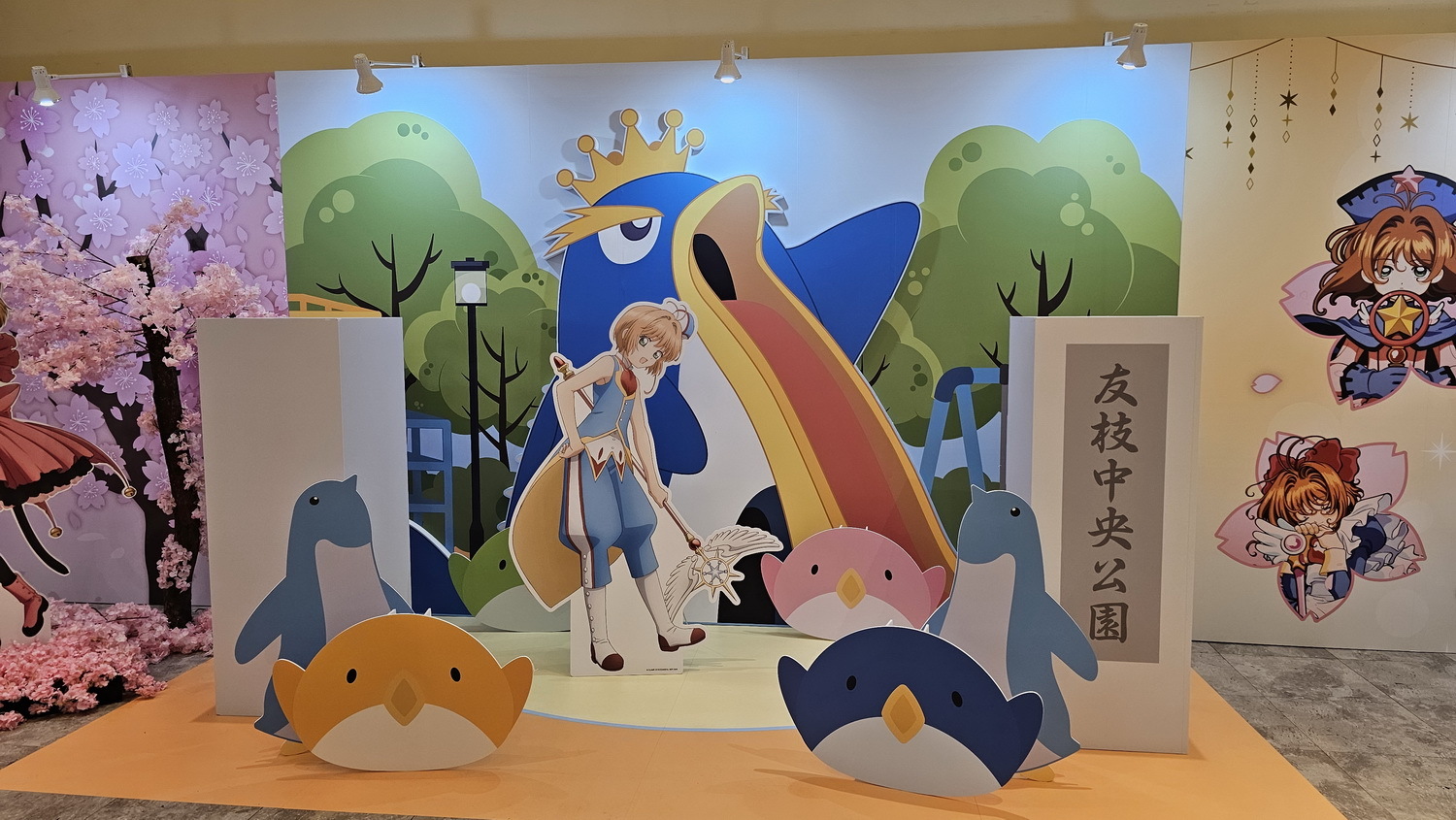 庫洛魔法使》中的名場面,包括「小櫻家的地下室」、動畫中的「企鵝大王公園」、以及「最後的審判」場景。現場同步設置角色的 1:1 立牌,夢幻粉櫻背景打造沉浸式氛圍。