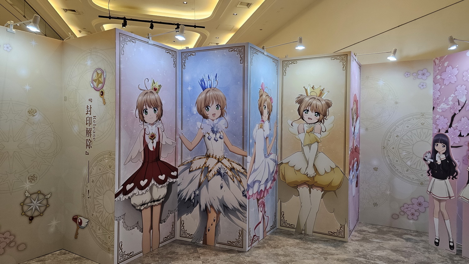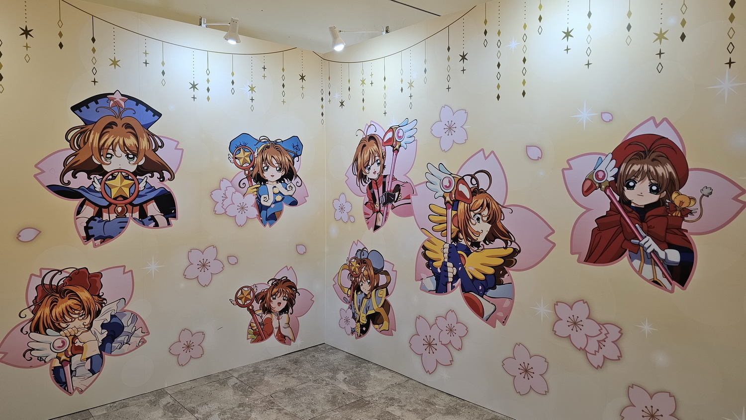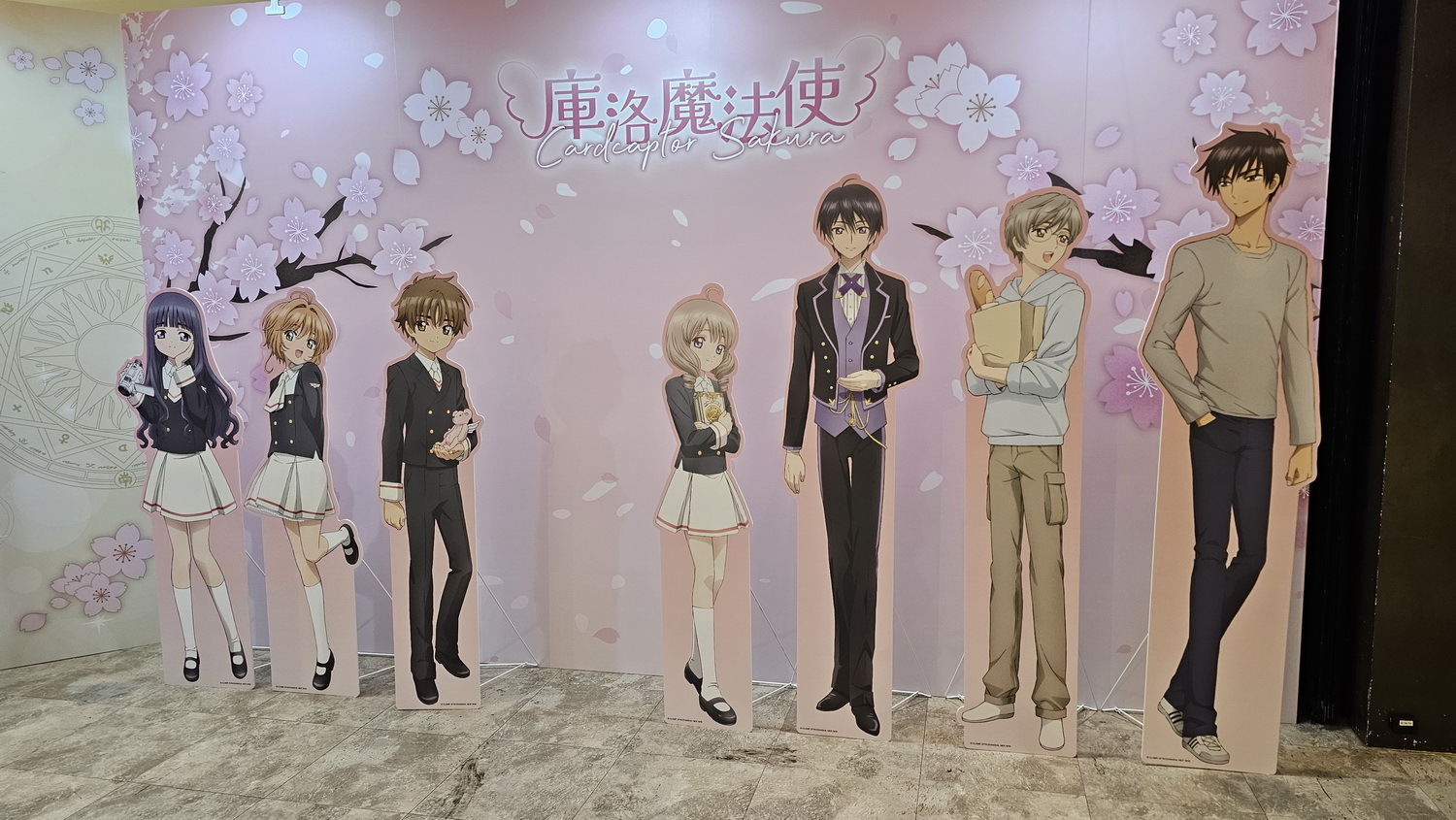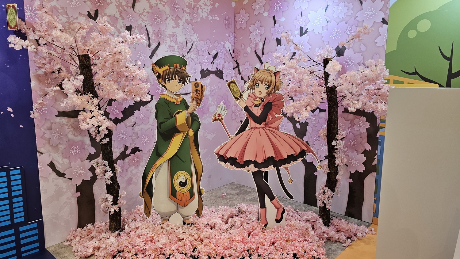 庫洛魔法使》中的名場面,包括「小櫻家的地下室」、動畫中的「企鵝大王公園」、以及「最後的審判」場景。現場同步設置角色的 1:1 立牌,夢幻粉櫻背景打造沉浸式氛圍。