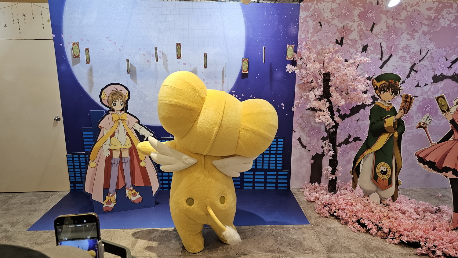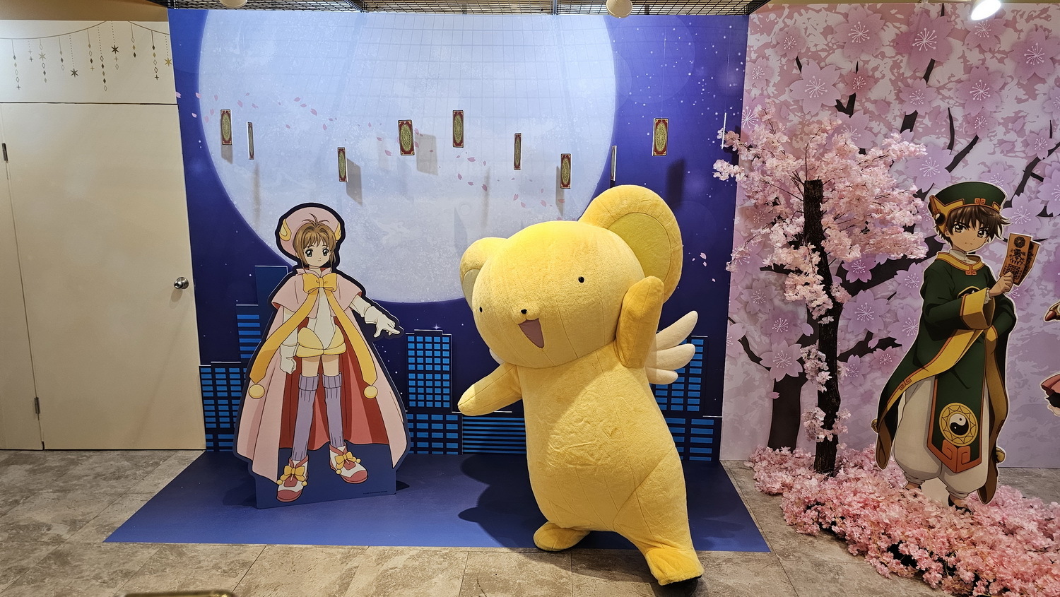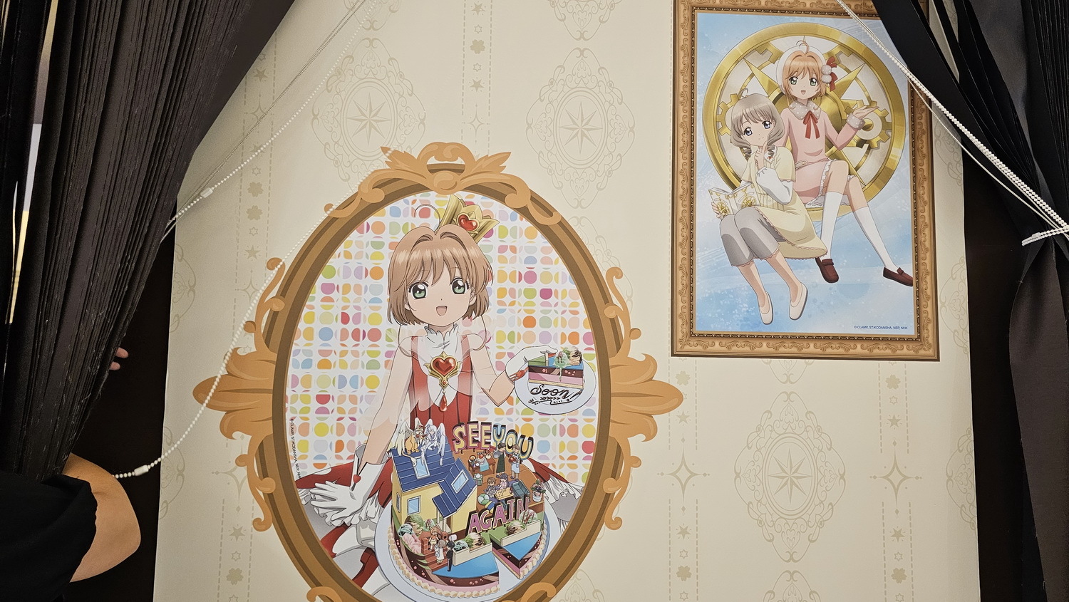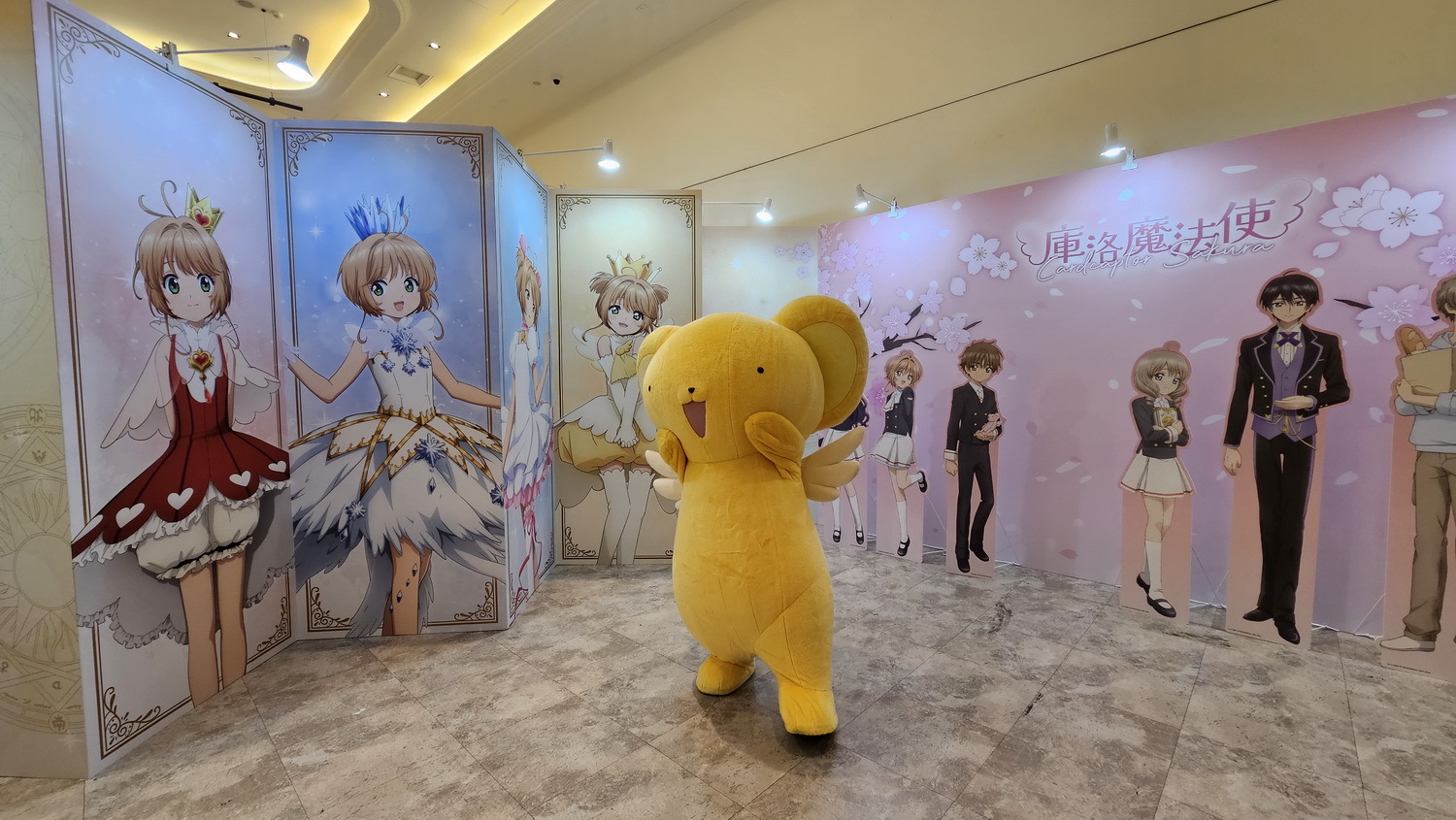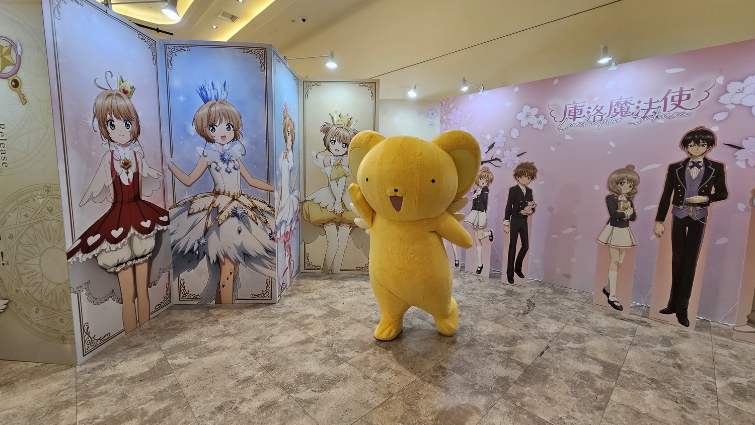 庫洛魔法使》中的名場面,包括「小櫻家的地下室」、動畫中的「企鵝大王公園」、以及「最後的審判」場景。現場同步設置角色的 1:1 立牌,夢幻粉櫻背景打造沉浸式氛圍。