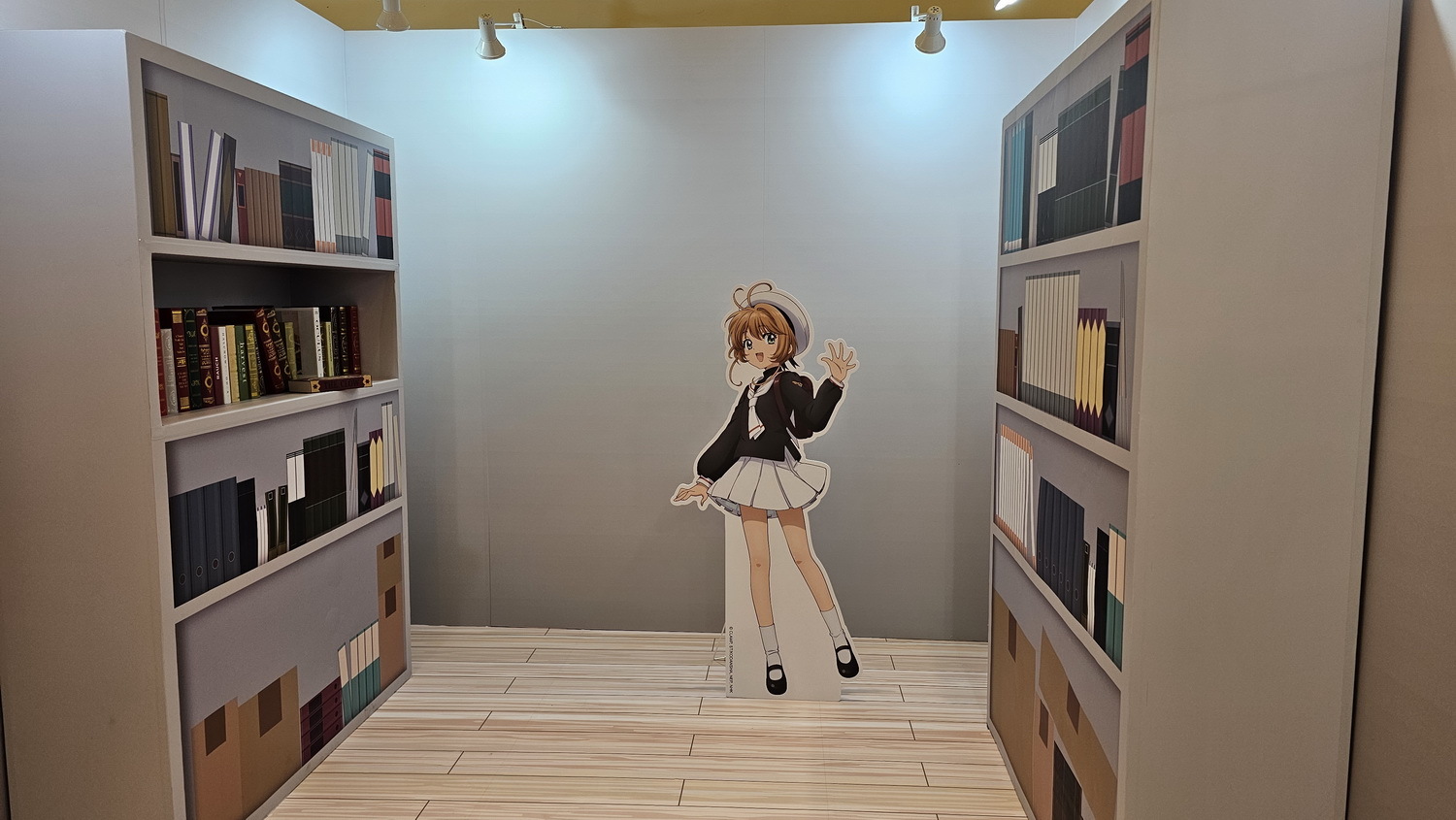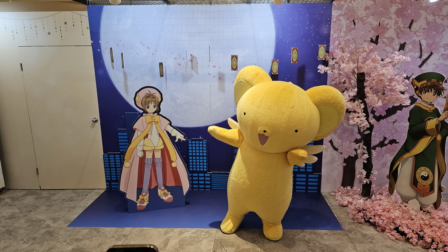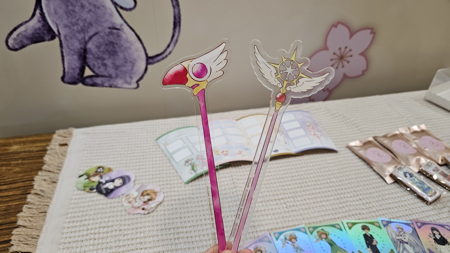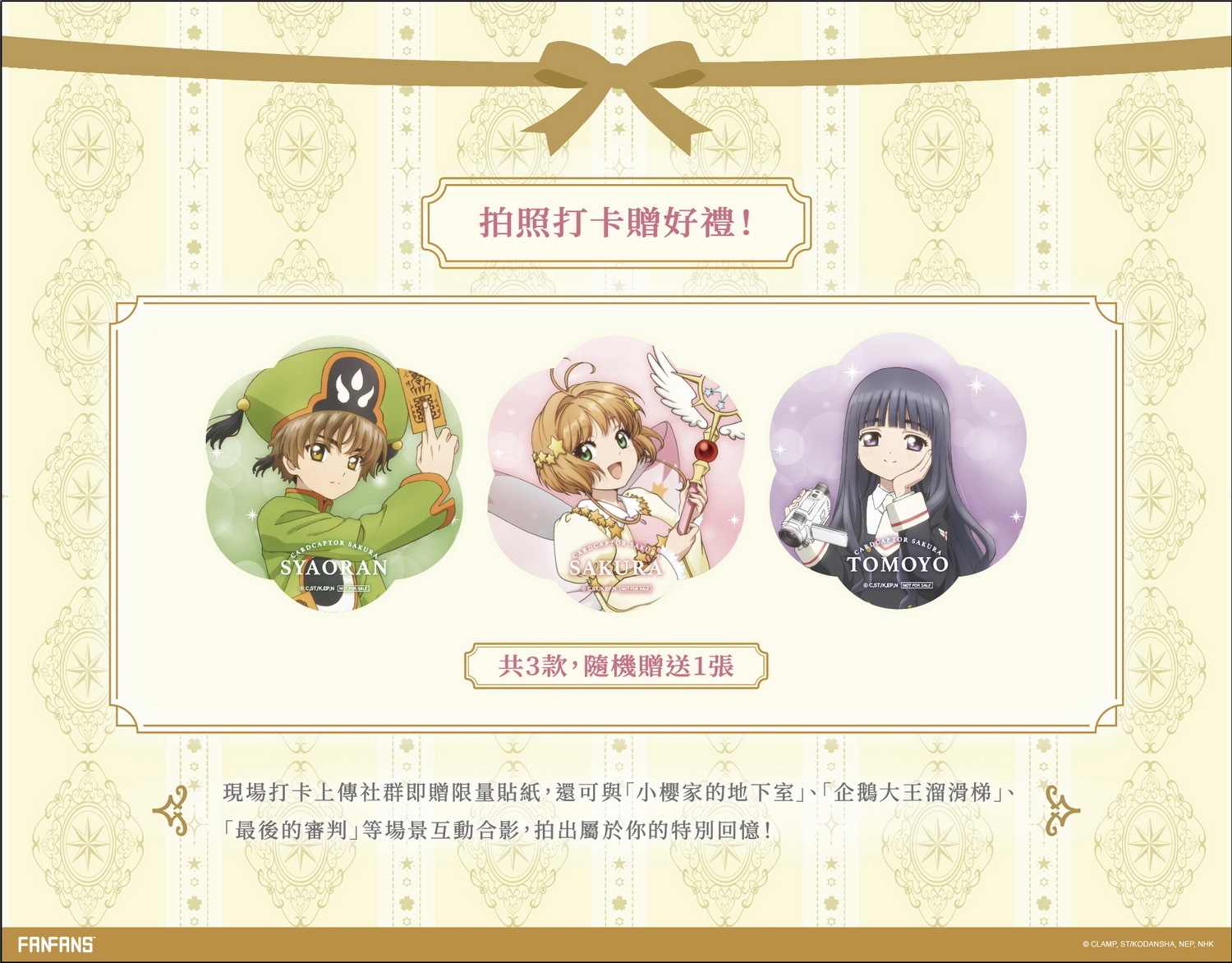 庫洛魔法使》中的名場面,包括「小櫻家的地下室」、動畫中的「企鵝大王公園」、以及「最後的審判」場景。現場同步設置角色的 1:1 立牌,夢幻粉櫻背景打造沉浸式氛圍。