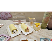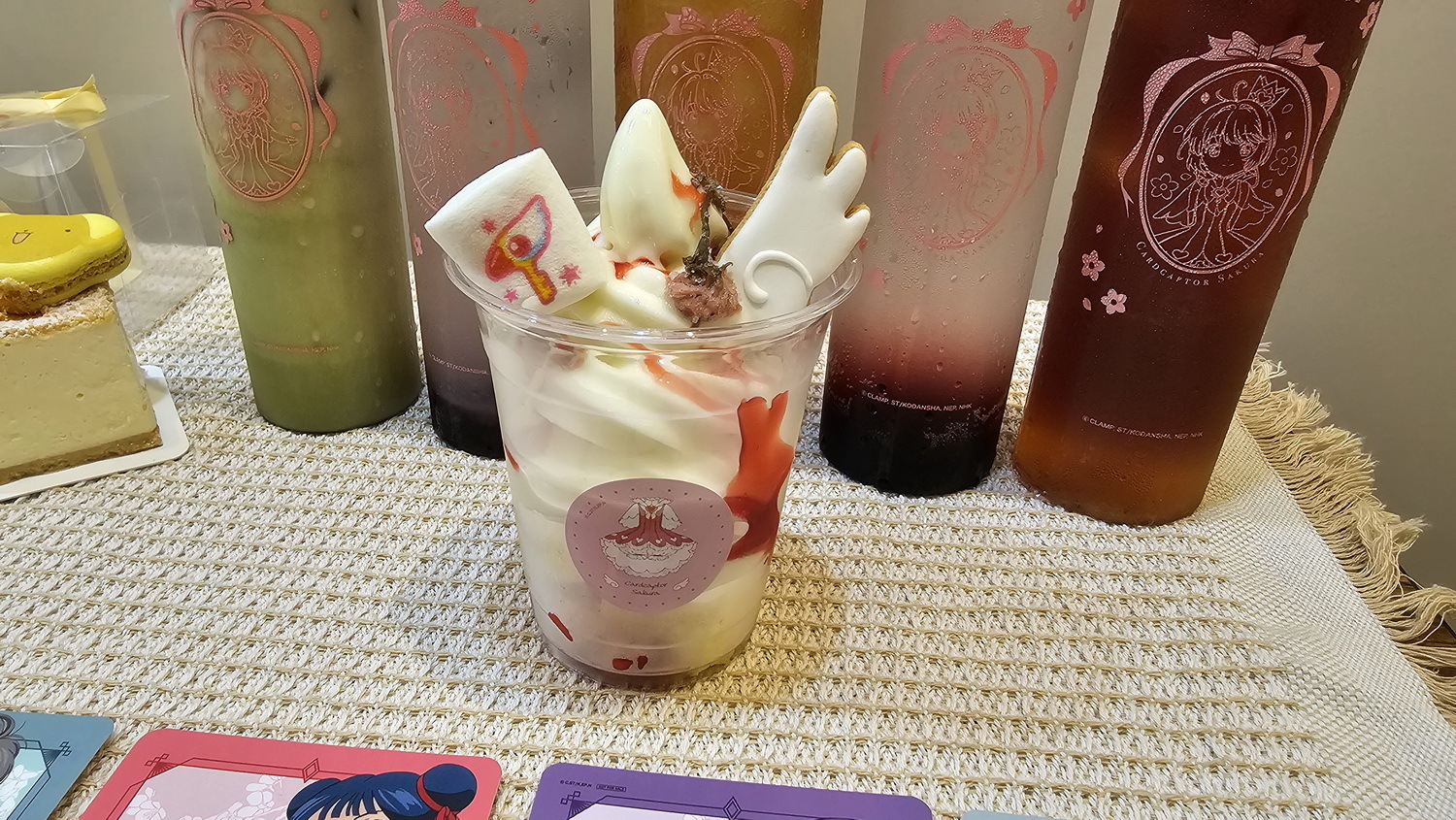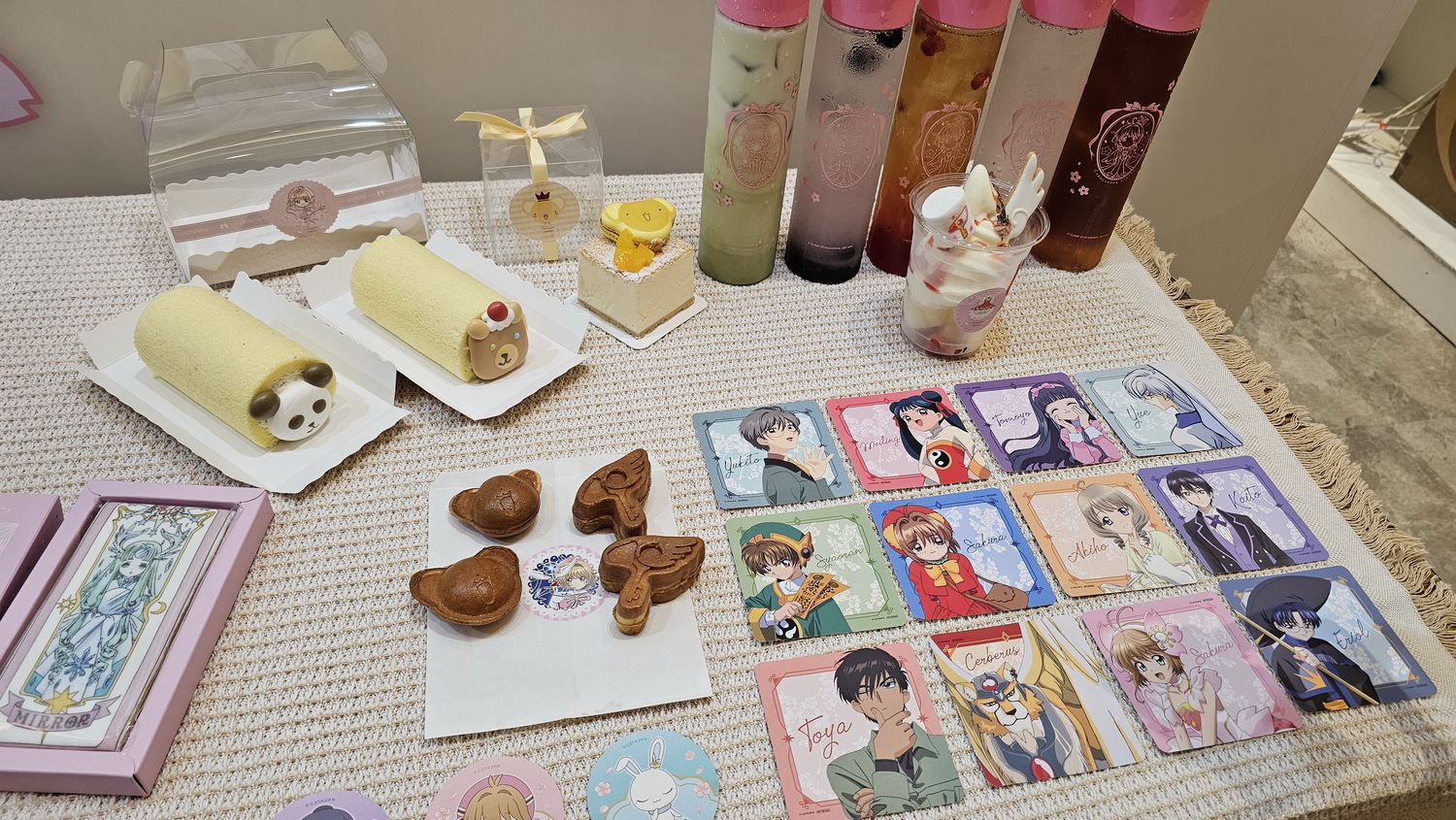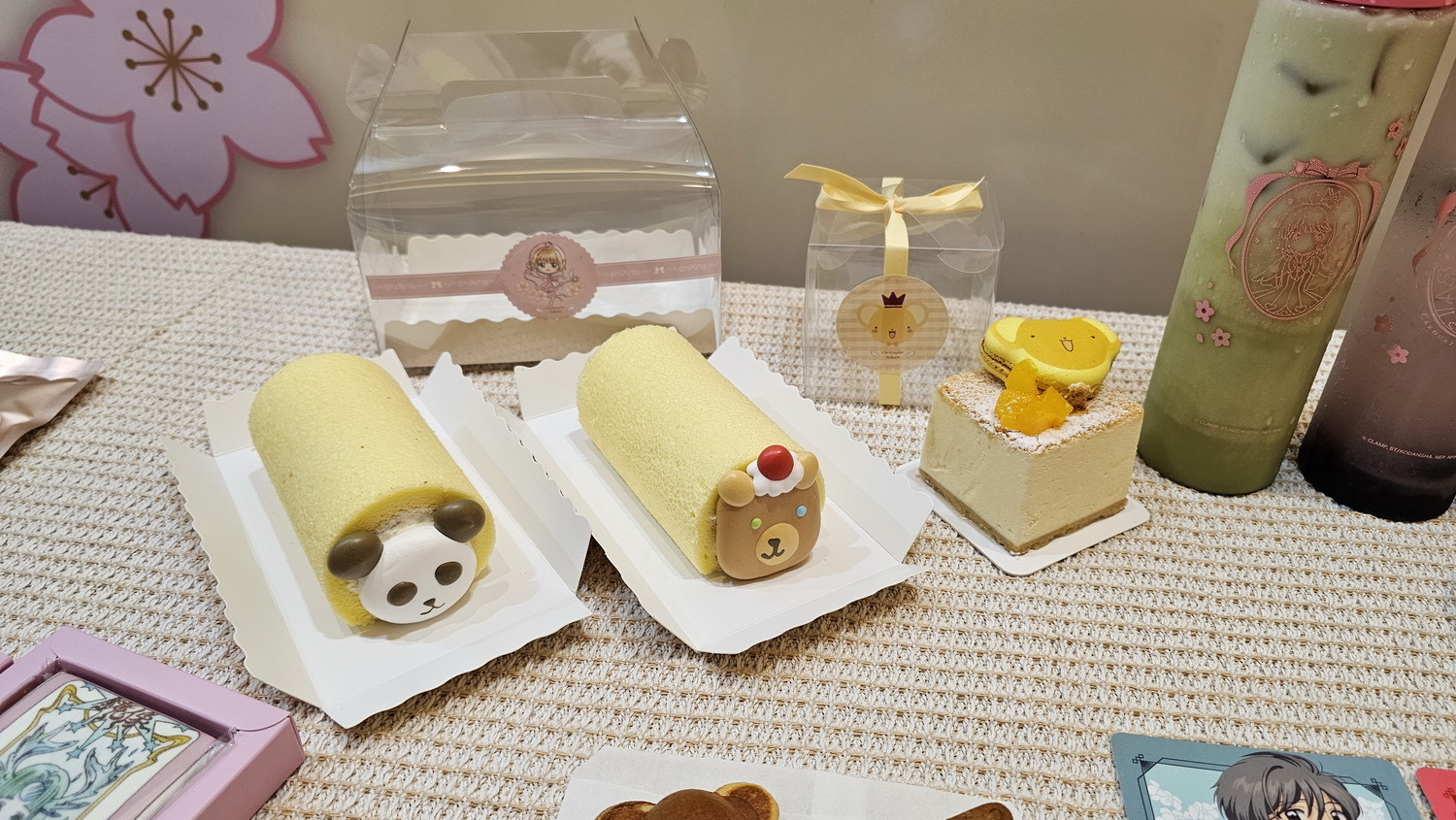 快閃店同步推出限定主題甜點,包括小櫻的家政課蛋糕捲(兩款,草莓熊/熊貓),療癒外型搭配綿密蛋糕體,還原小櫻家政課時所出現的蛋糕捲模樣。還有透明牌造型糖霜餅乾(隨機三款,爭鬥/飛翔/顯現),經典卡牌造型甜點,香脆可口,兼具視覺與味覺雙重享受。凡購買甜點,即可獲得隨機 Q 版角色貼紙乙張(隨機贈送,恕不挑款),數量有限。