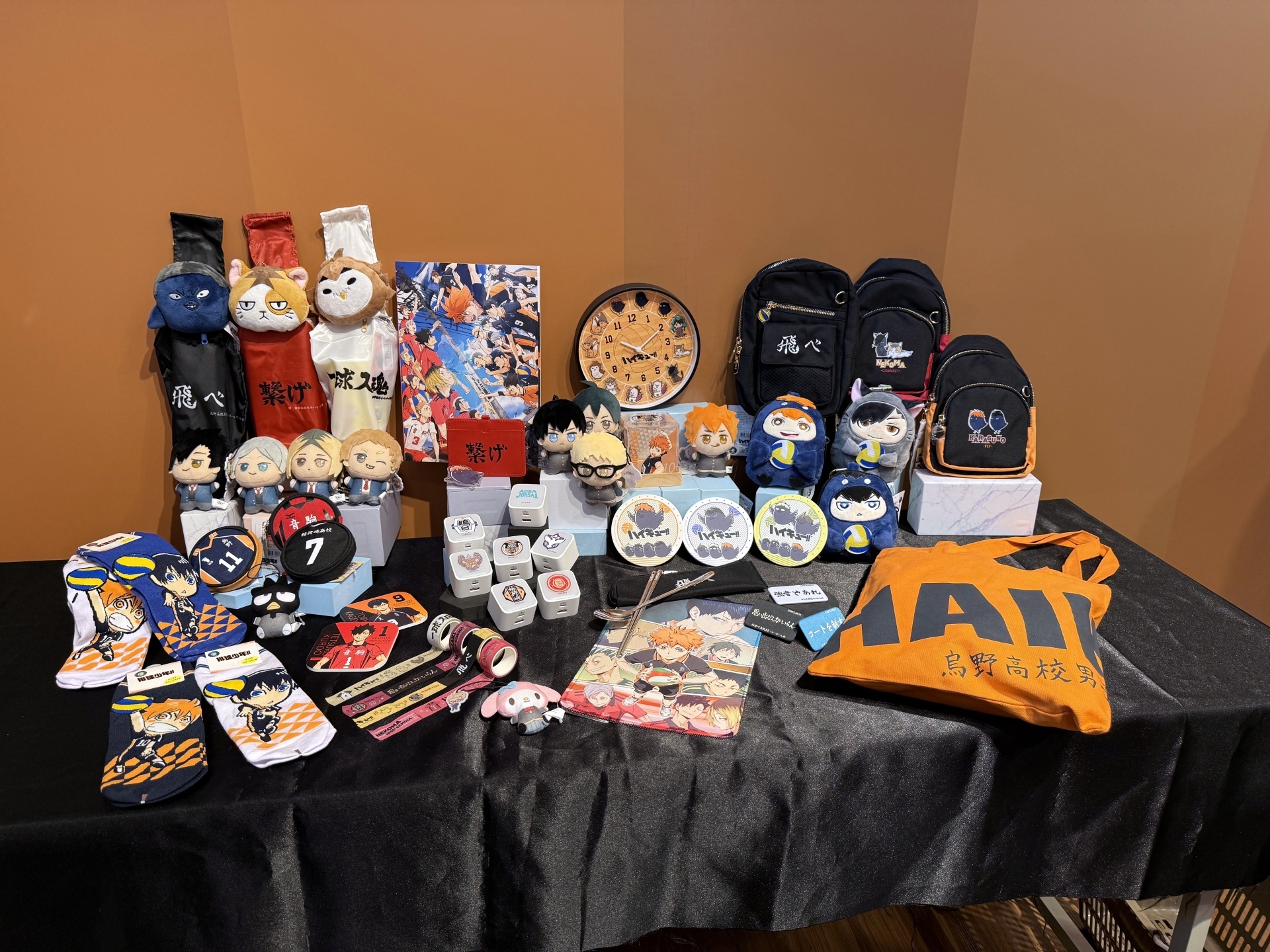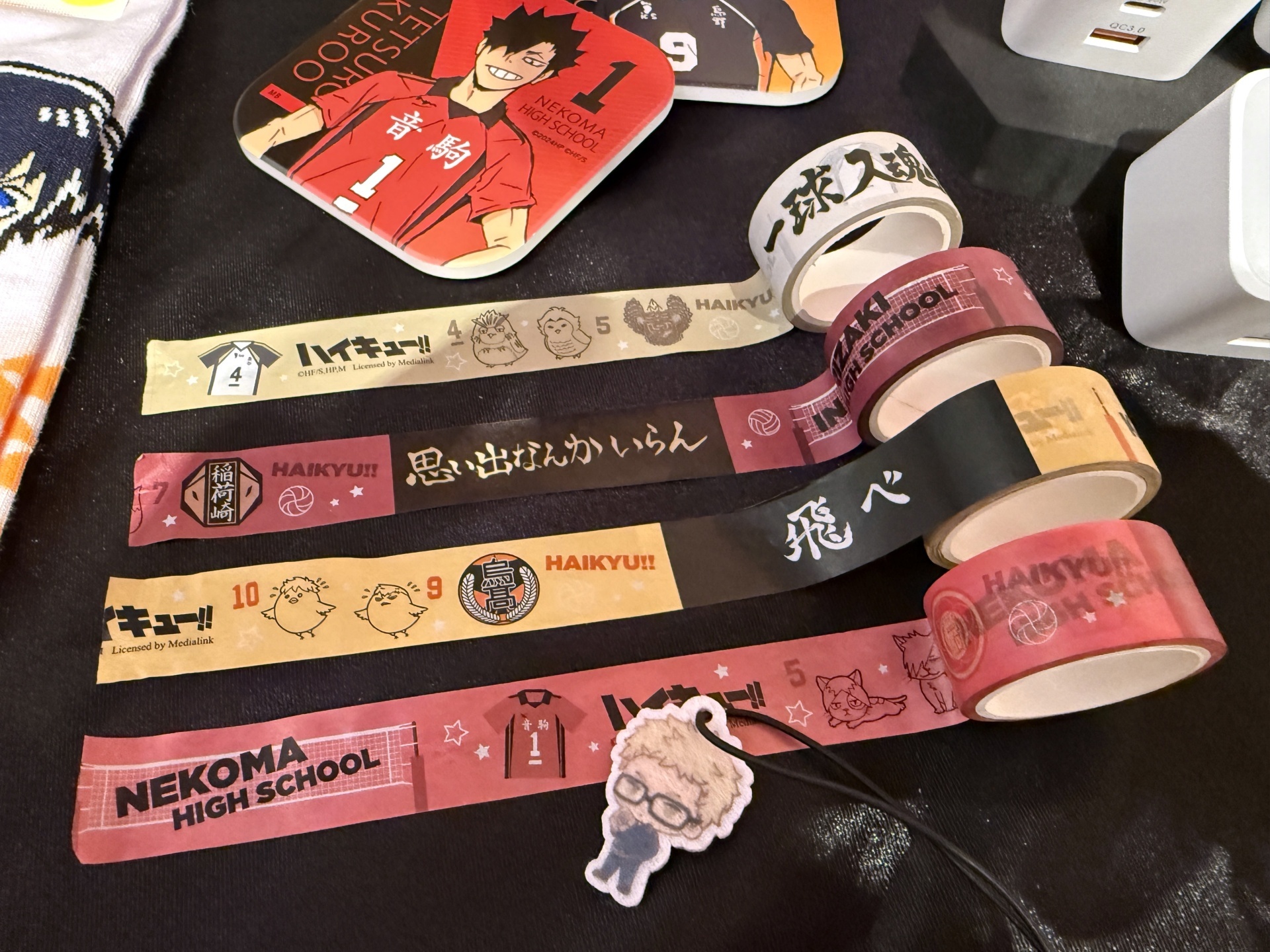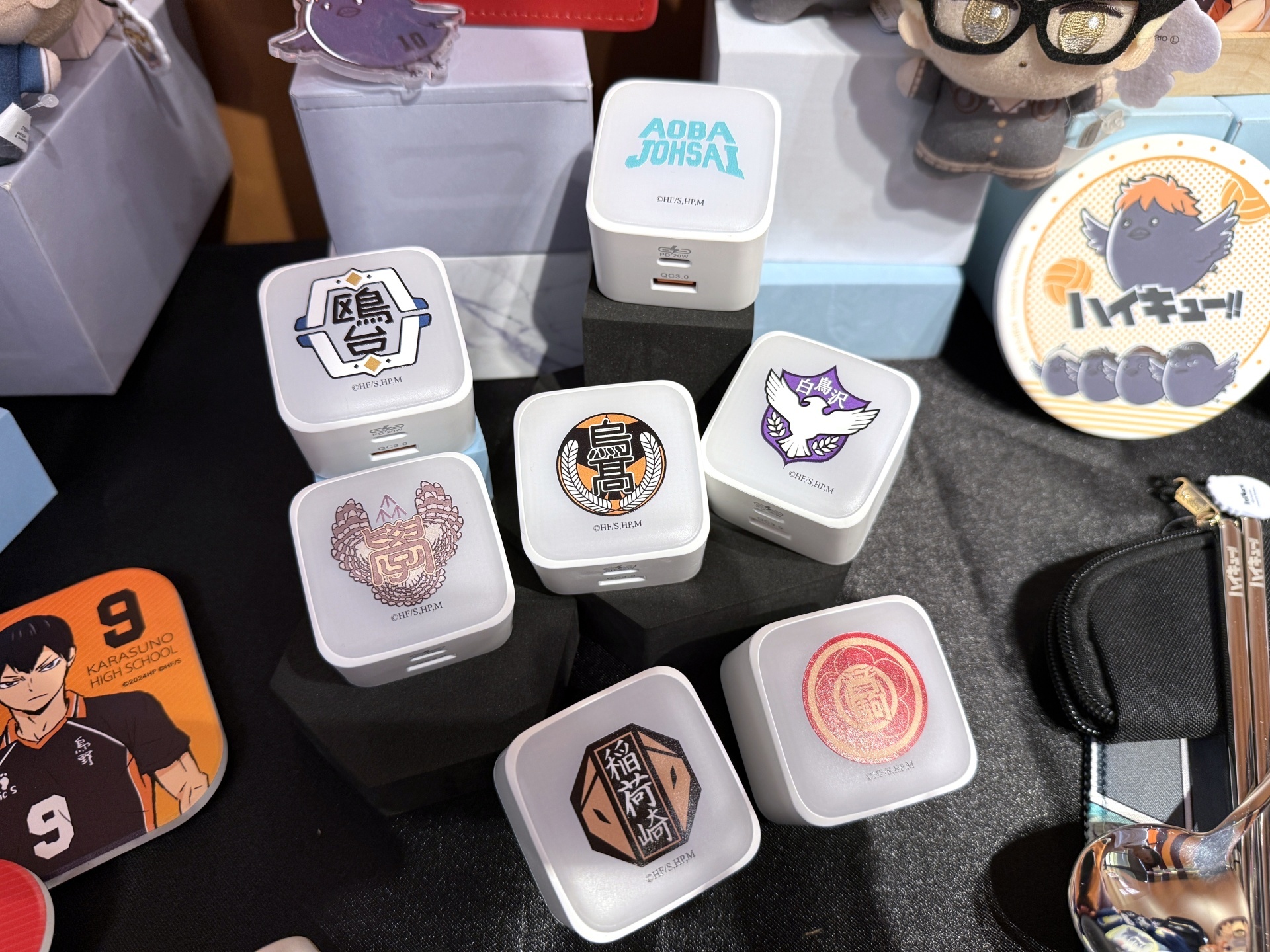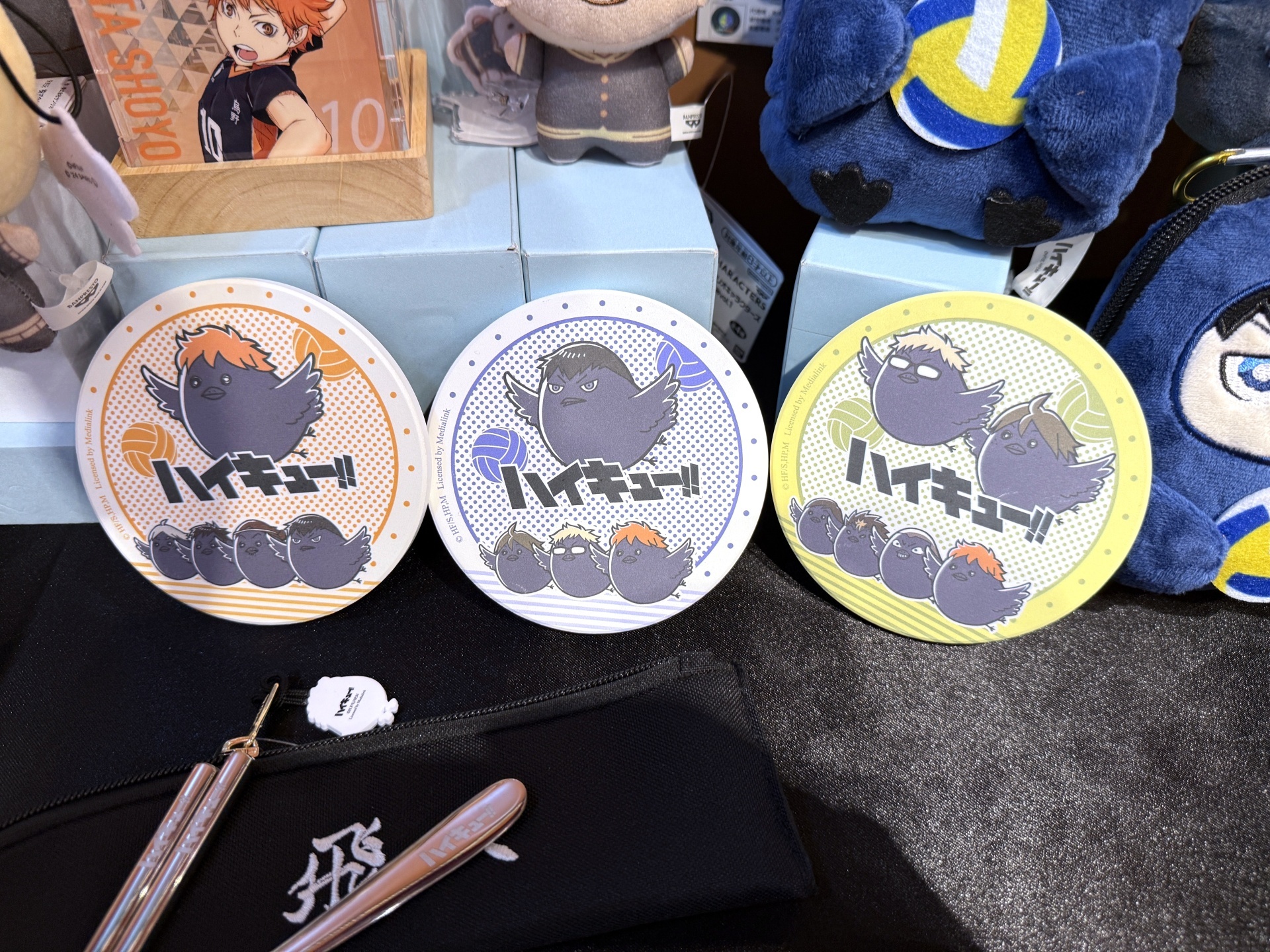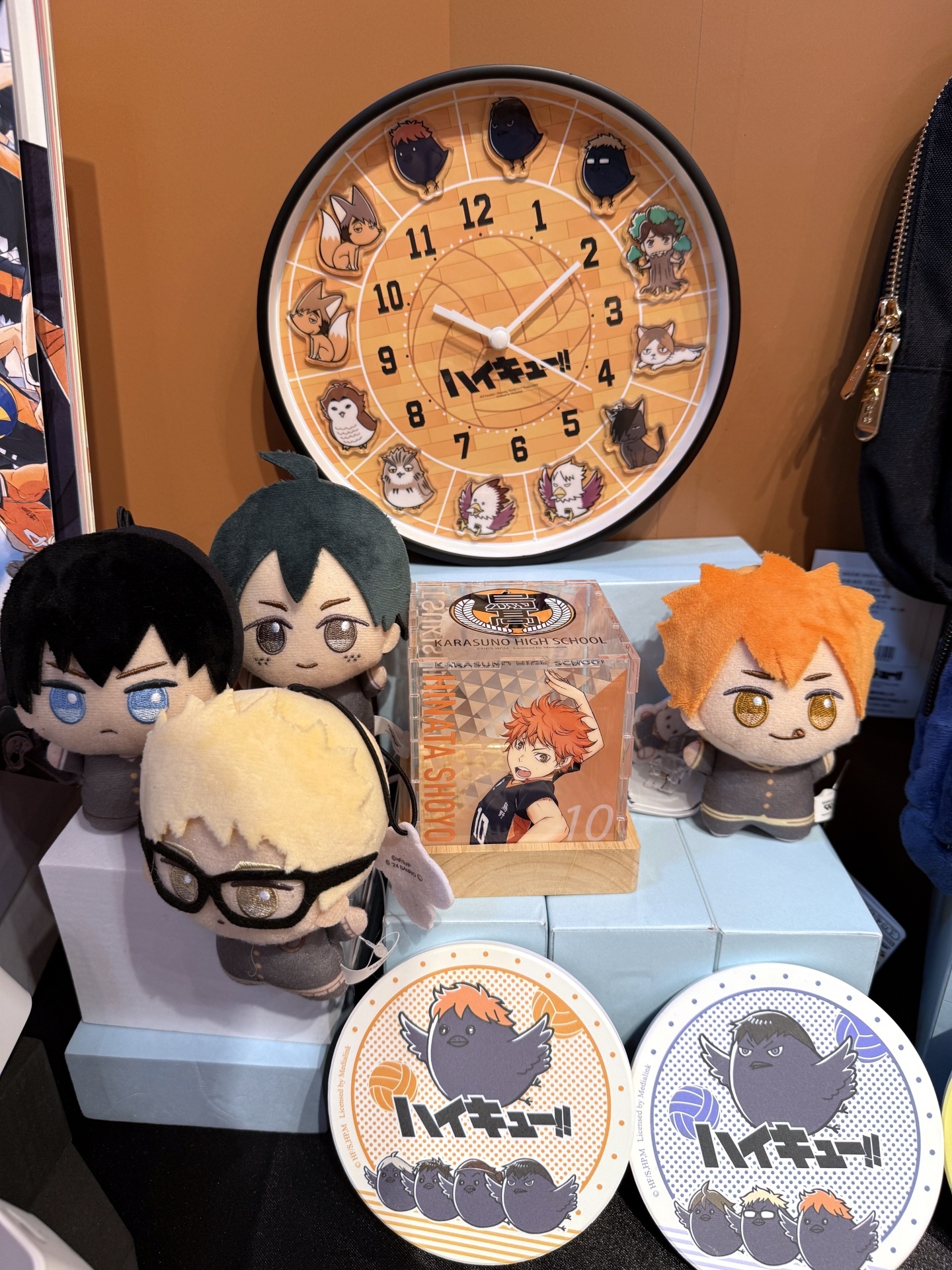 而在全新週邊商品的部分,兩款「時鐘」有 12 隻 Q 版動物角色在鐘面上陪你。白天能當擺飾、晚上能當床頭燈的「造型 LED 燈」,則是有有 Q 版日向&影山、日向烏鴉&影山烏鴉及 10 位角色大集合三款。此外「發光充電器」,有著烏野高中、青葉城西高中及音駒高中等七款學校校徽,配有 Type-C 和 USB 雙插快充孔,還有三段式發光功能可以當成小夜燈。三款「吸水杯墊」則是有日向烏鴉、影山烏鴉及月島烏鴉等。「方形小夜燈」有日向、影山帥氣英姿,擺桌上讓人氣角色陪你一起唸書、工作。另外像是「布面徽章盲抽」等全新商品,也將在本次快閃店中登場。