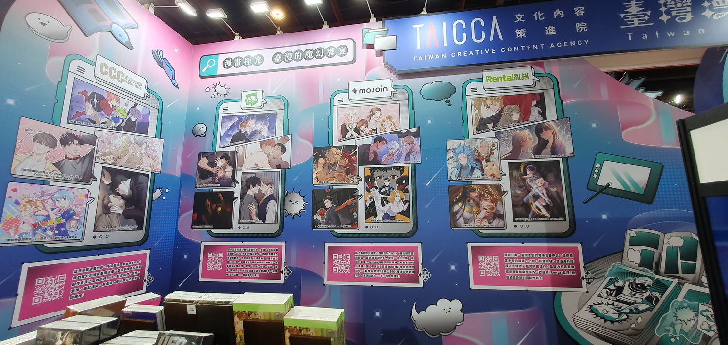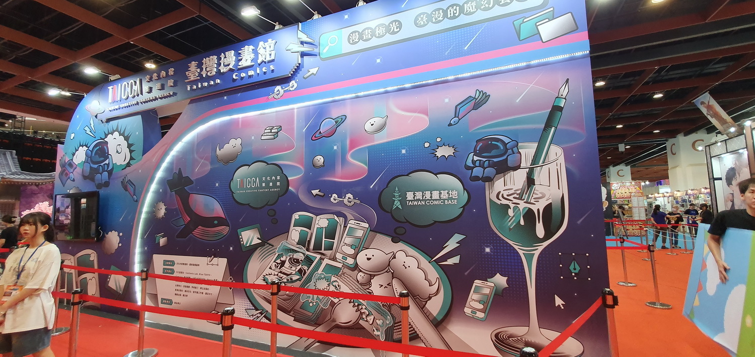 文策院策劃的「臺漫館」今年以「漫畫極光,臺漫的魔幻饗宴」為主題,精選展出超過 50 部人氣臺漫作品,包含《C 級哨兵備忘錄》、《我的秘書總想殺了我!》、《妖怪五星好評》、《Exchange!特務換身愛》,BL《DAY OFF》,三度榮獲金漫獎的《大仙術士李白》,以及《被我推坑的偶像同學》等。