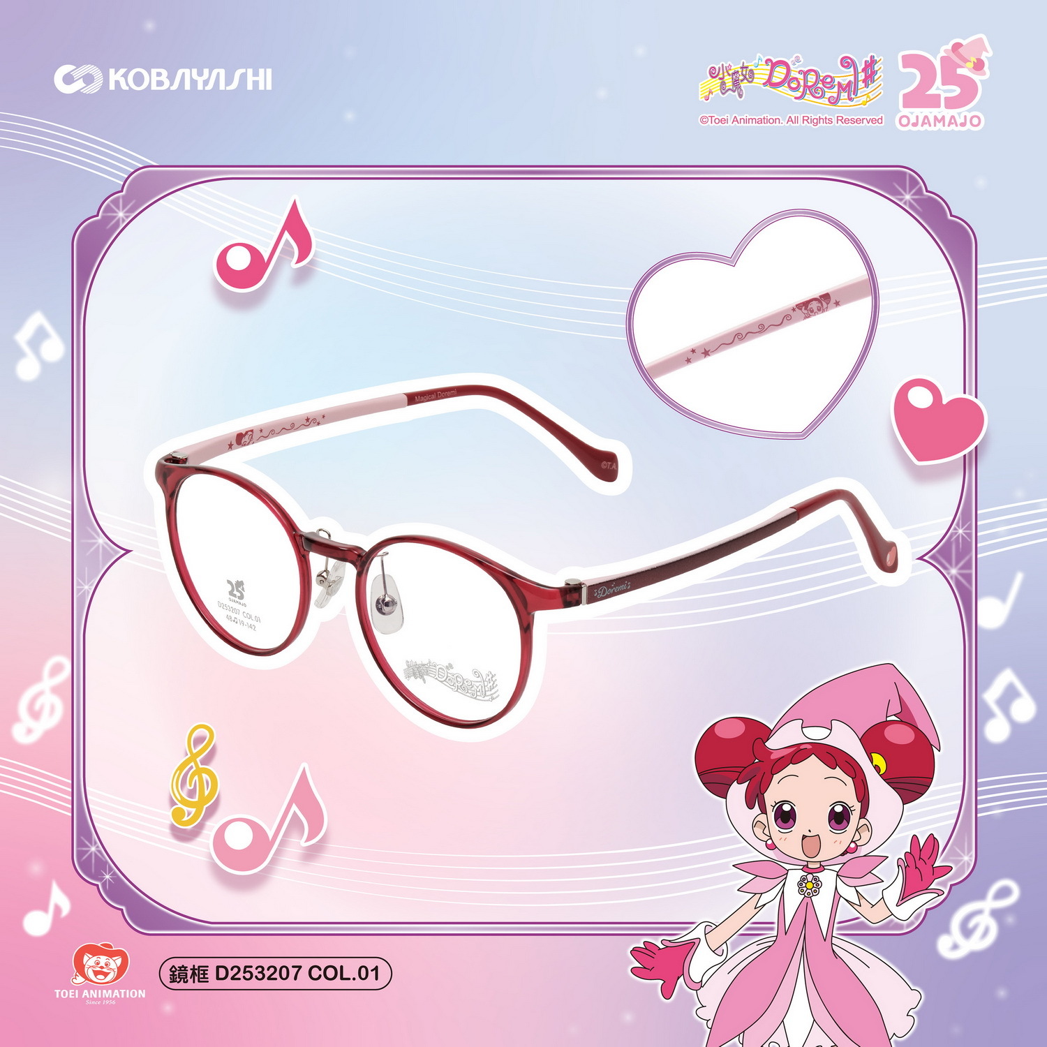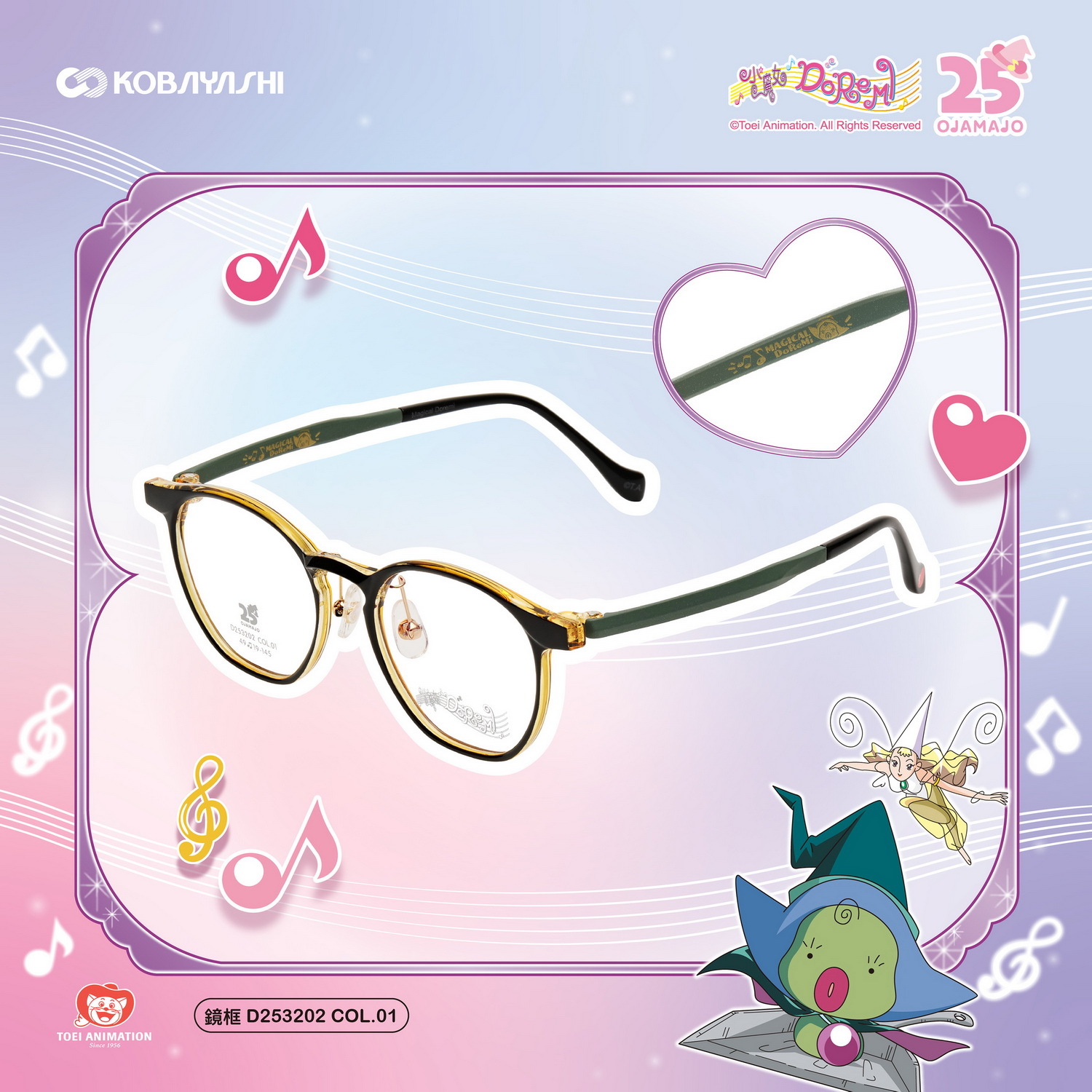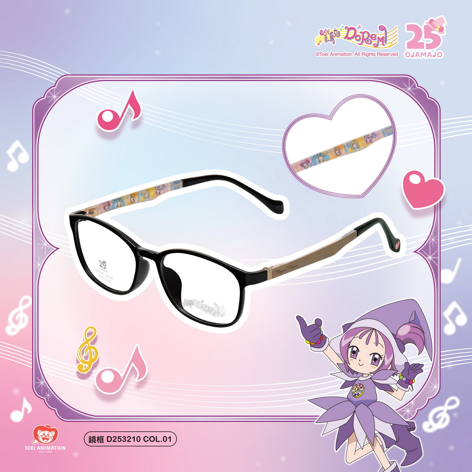 小魔女 Doremi》推出多款正版授權鏡框,將轉換器、魔法帽、見習生徽章等魔女道具和人氣角色融入鏡框與鼻墊,並依照鏡框材質與配件共分為「魔女見習系列」與「魔女閃耀系列」兩大系列眼鏡。