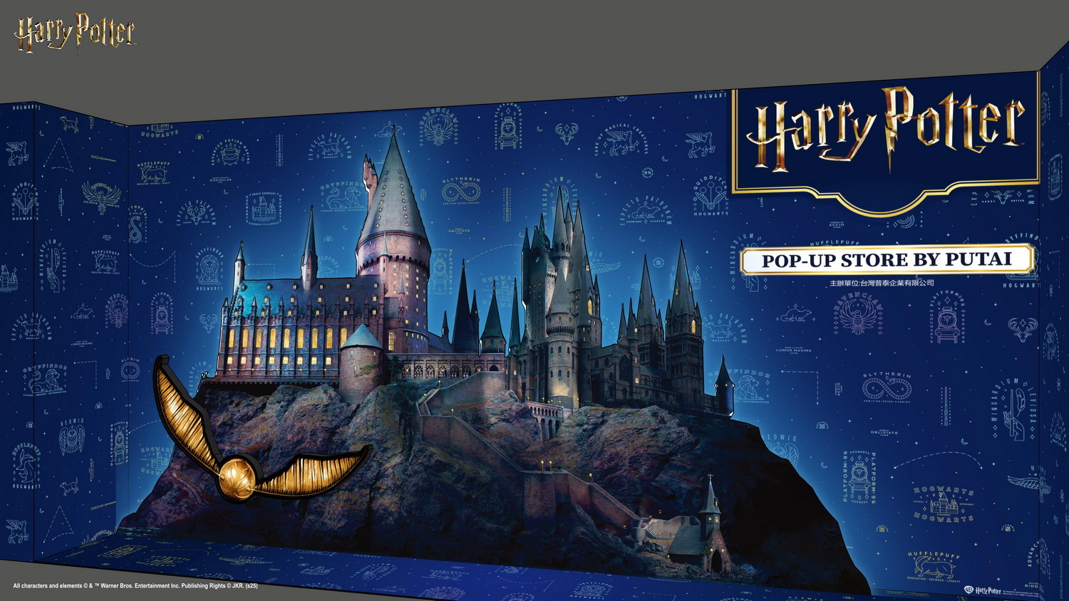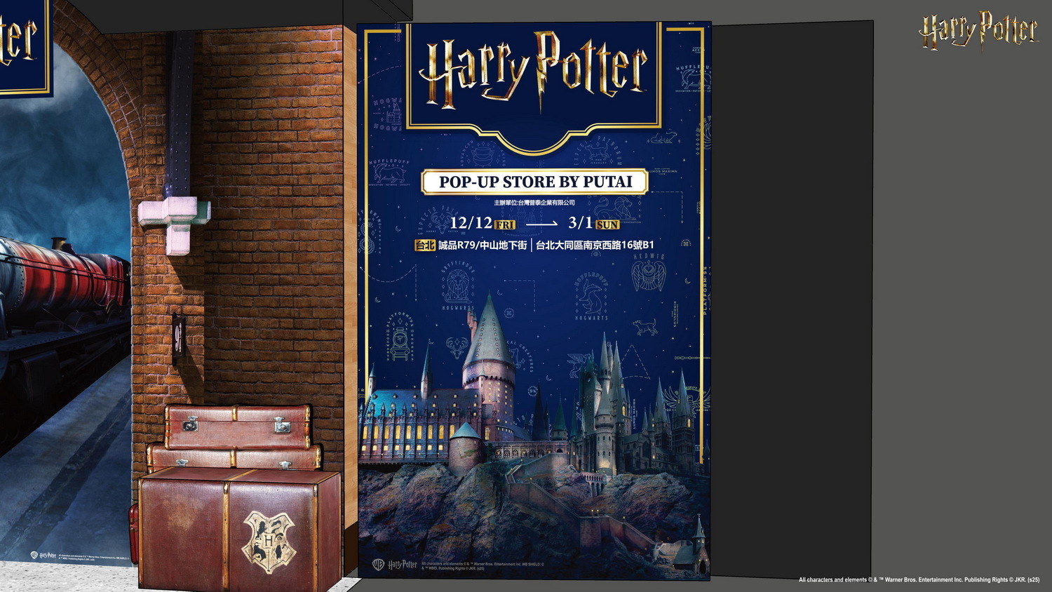 由普泰主辦的哈利波特快閃店將自 12/12-3/1 現身台北誠品 R79。快閃店打造了六大拍照打卡區,在黑暗天空中閃耀著奇幻光芒的「霍格華茲場景」,讓粉絲們一秒回想起電影場景;店內「入學通知區」頭頂上飛舞著的滿滿的信件,營造出電影中收到霍格華茲邀請函時的驚喜感受;「學生餐廳區」則是讓粉絲們坐在餐桌前重溫電影。這次快閃店更推出近 60 款最新周邊商品,從燈光一暗、守護神圖案就以夜光方式亮起的「夜光流沙杯墊」,到細緻呈現霍格華茲四學院徽章的「學院玻璃杯組」,再到可愛「毛毛手拿包」,提供給有興趣的人參考。