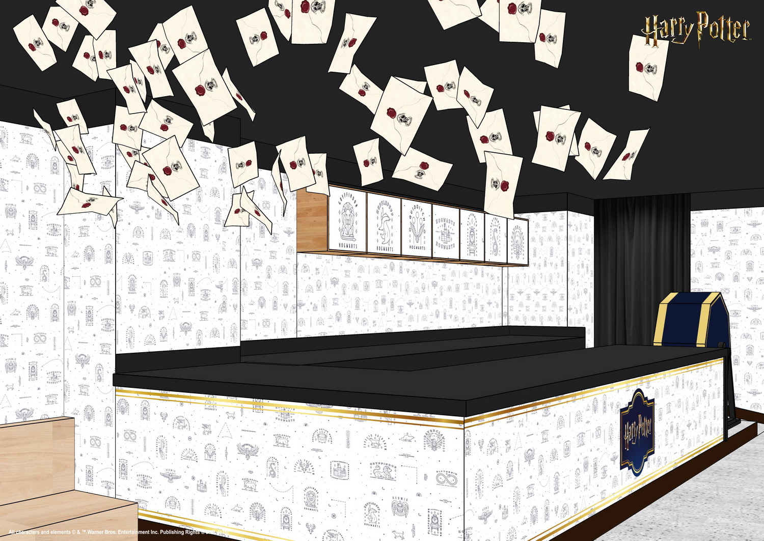 《哈利波特》快閃店就從「霍格華茲場景」正式啟程,氣勢磅礴的城堡搭配金探子,營造出讓粉絲一眼就認出的經典意象,緊接著映入眼簾的「主視覺」以夜色下的霍格華茲城堡構成壯麗背景,轉角來到「特快列車月台區」,逼真的紅黑蒸汽火車與兩旁的行李營造月台氛圍,讓人聯想到準備入學的激動心情!繼續前行便是令人既期待又怕受傷害的「轉蛋區」,快來試試手氣!接著來到「入學通知區」,天花板上飛舞的信件雨,每一封霍格華茲錄取信都象徵著夢想成真。而以霍格華茲大禮堂為背景的「學生餐廳區」,金色燭光與高聳拱頂營造莊嚴氛圍,快來坐在標誌性的木質長桌椅上與電影經典場景合影。六大經典打卡區及場景串聯,讓粉絲們都能拍下一張張令人難忘的精彩照片!