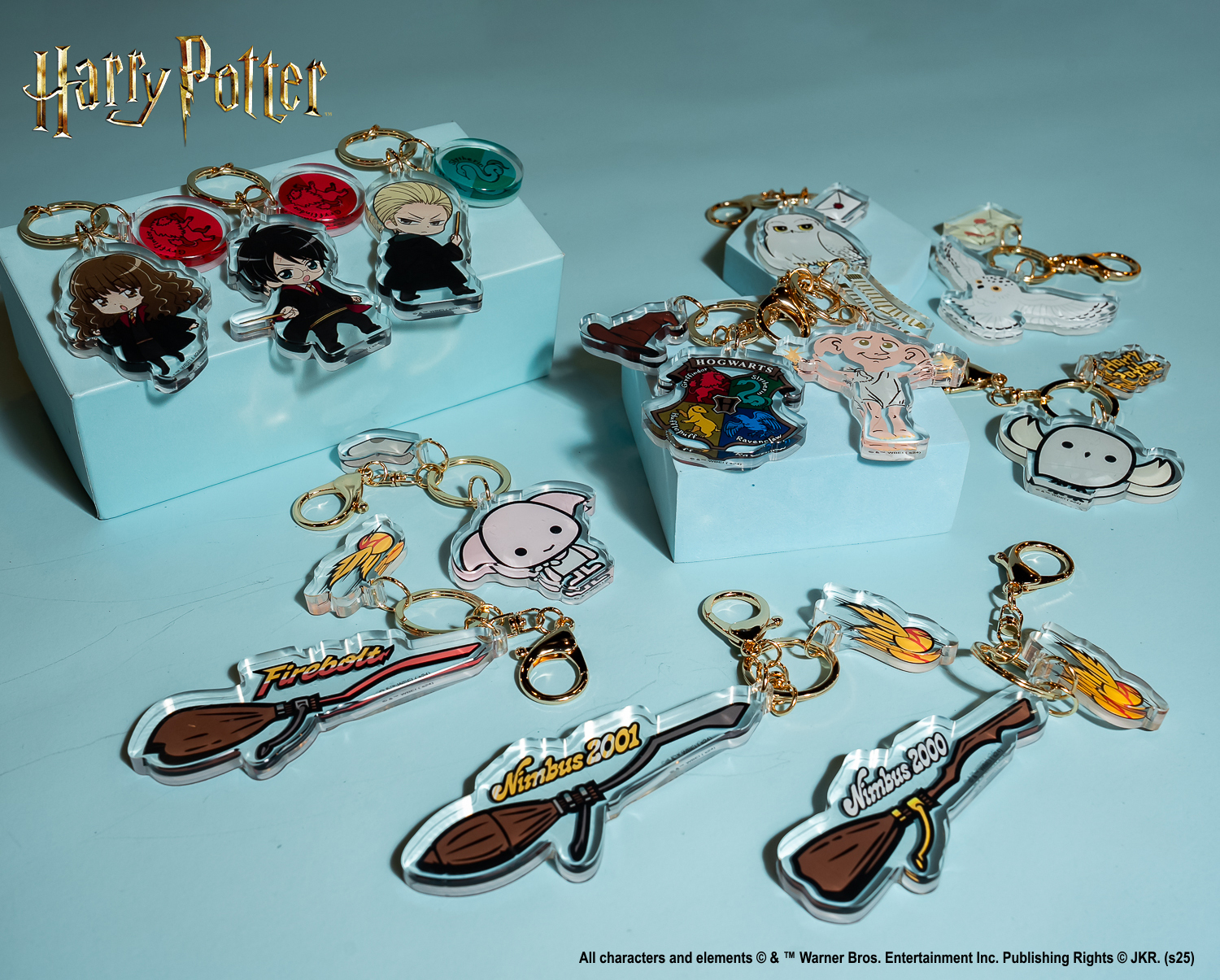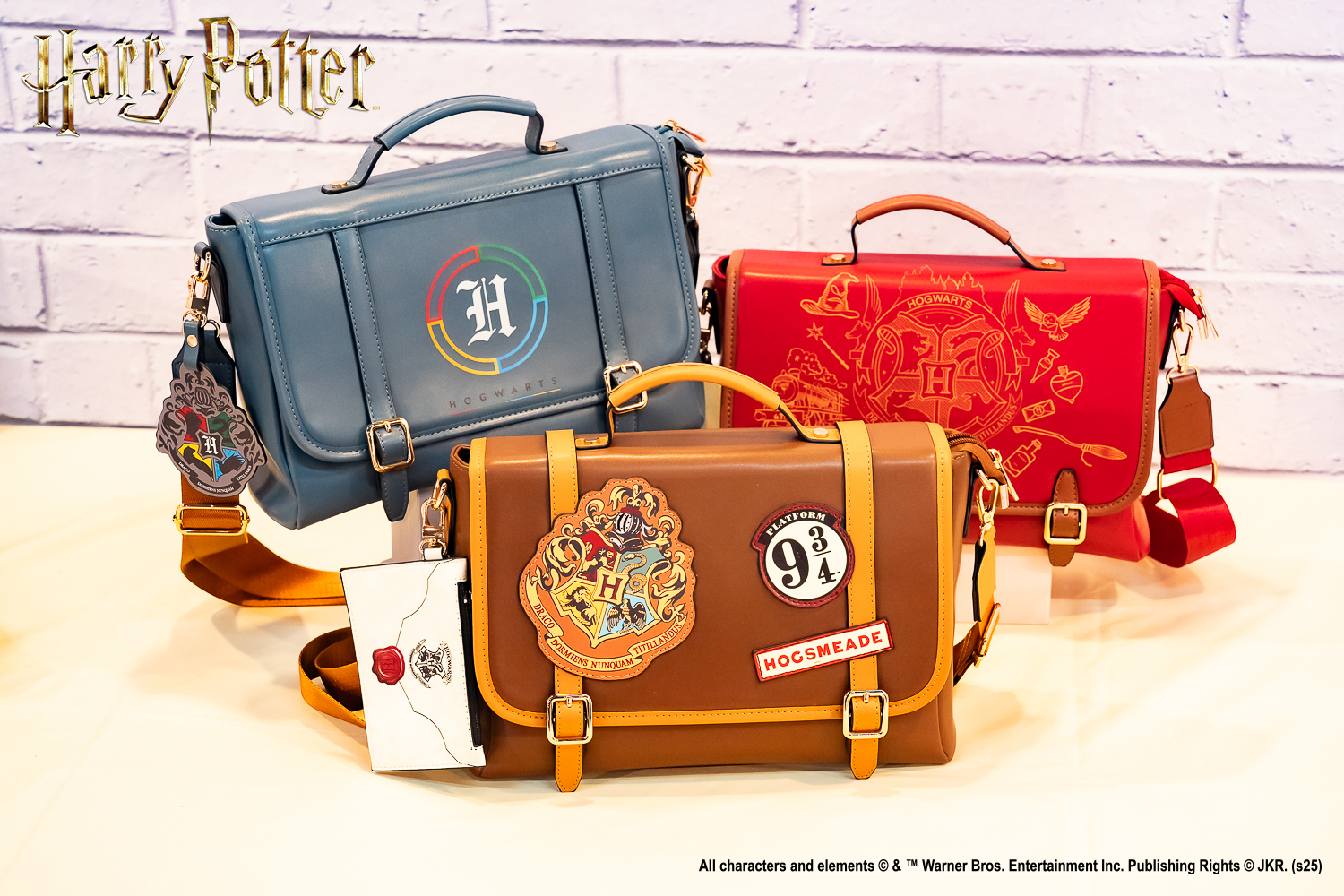 上班或上課都實用的三款「後背包」,以霍格華茲四學院藍灰、酒紅及棕色為主調,結合壓紋與金屬拉鍊等細節,學院氛圍拉好拉滿啊!而以角色與飛天掃帚為主題的十二款「鑰匙圈」,細節滿滿的吊飾設計,讓粉絲自由搭配,小心陷入選擇困難喔!想要輕便出門,就選搭配不同徽章與柔和配色的四款「側背包」,東西一丟就馬上GO!飲料控必備的「飲料提袋」以人氣角色多比與嘿美為設計,馬上入手去!
