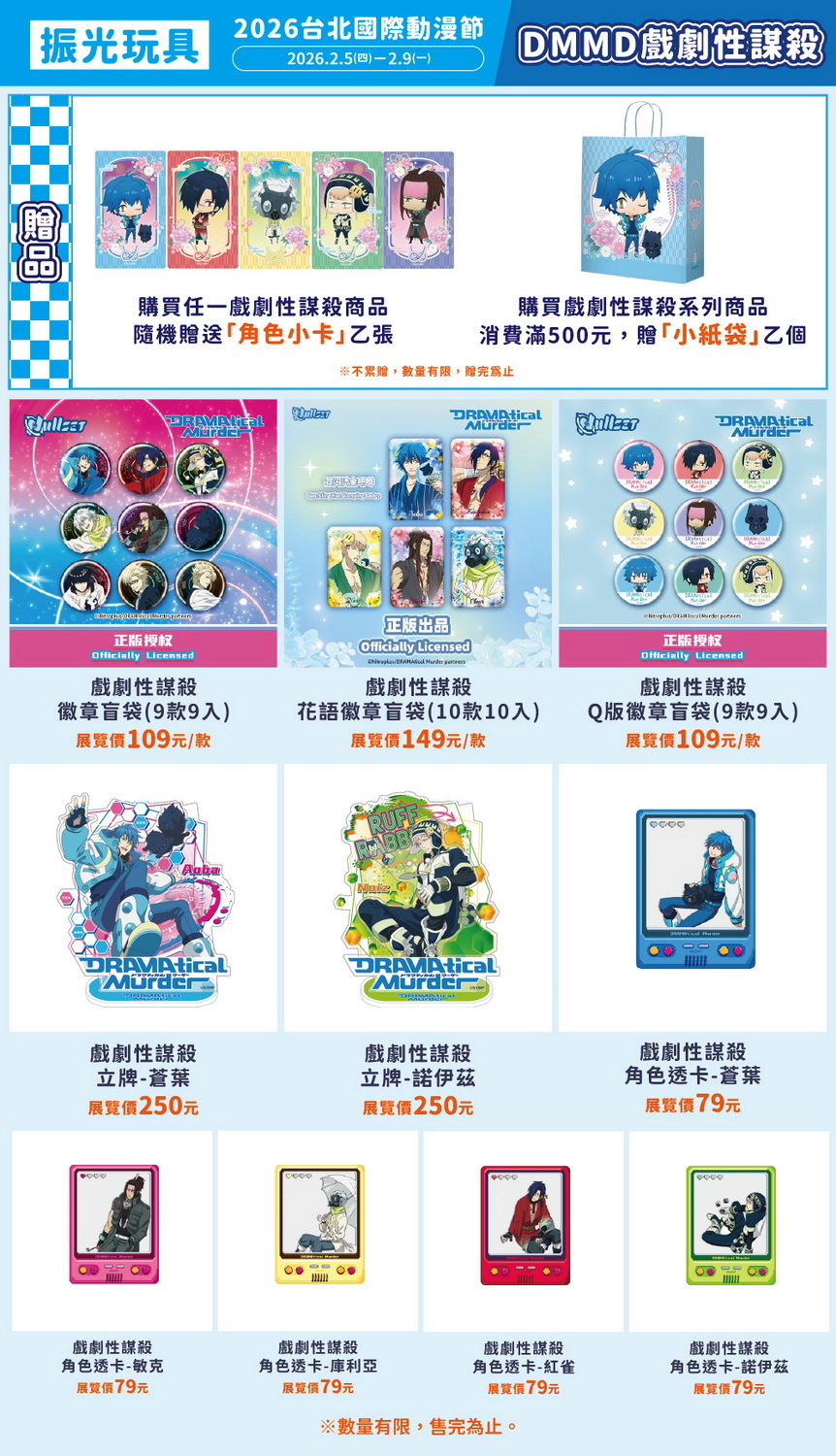 單筆消費滿 500 元,隨機贈送《怪盜聖少女》紙立牌乙個。數量有限,送完為止。