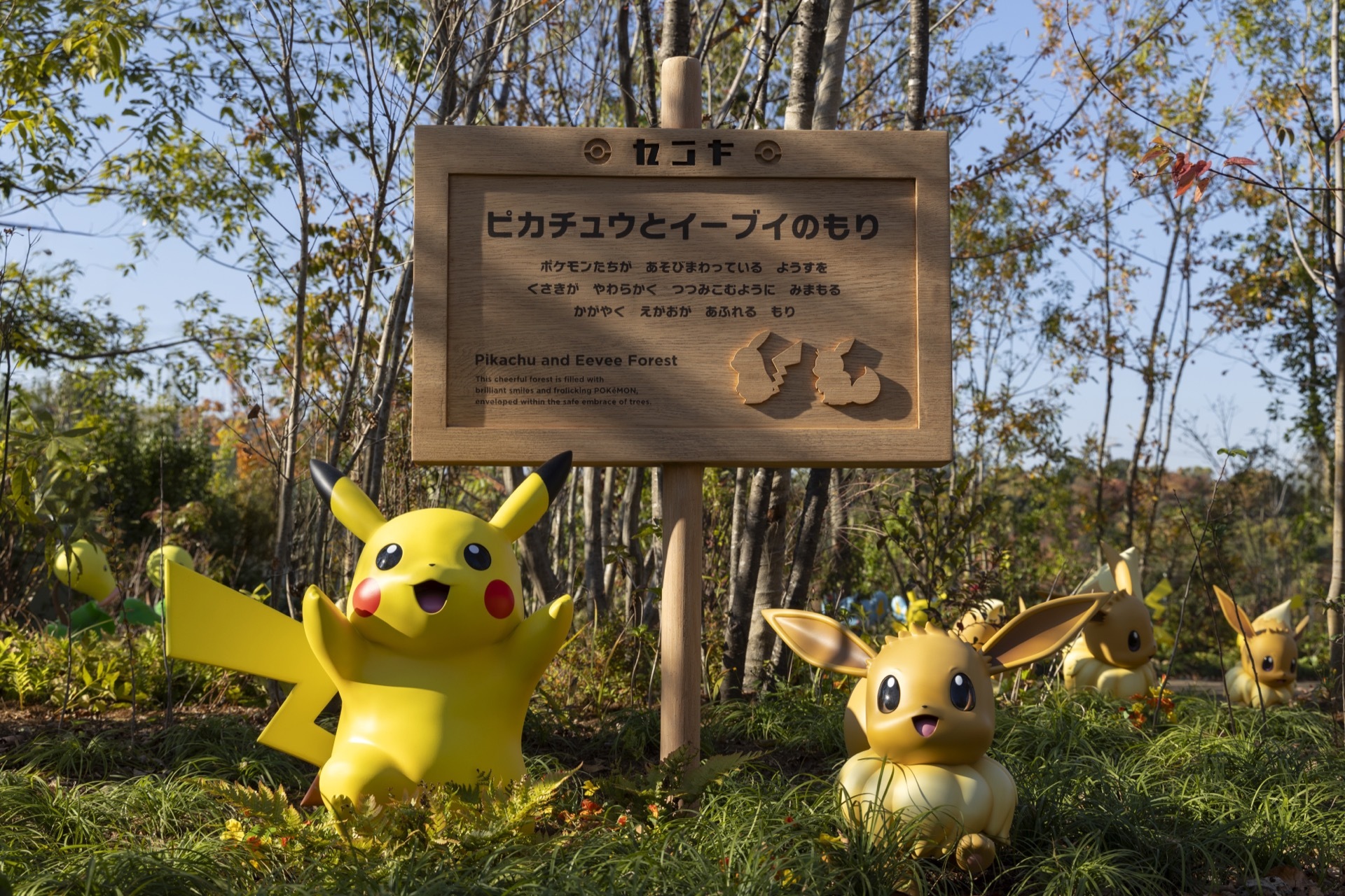 穿過研究所後,即可進入全長約 500 公尺的「寶可夢森林」。園區內設計了高低差明顯的自然地形,包含坡道、階梯、隧道與林間小徑,共分為 10 個區域,例如「皮卡丘與伊布的森林」等主題空間。