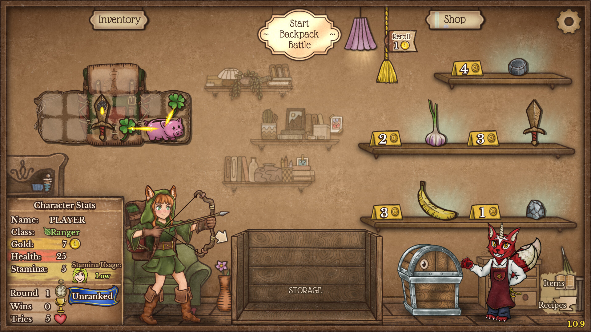 背包亂鬥》是一款勝負全由背包管理掌握的 PvP Roguelike 自動對戰遊戲。玩家須使用背包內的道具與他人對戰,而「該買什麼」、「道具該如何擺放」將是致勝關鍵。所有道具皆有不同的形狀、尺寸、價格、品質,只要搭配得當,就能做出傳說中的武器、調製出強力藥水、或是孵出龍讓牠成為夥伴一起作戰。