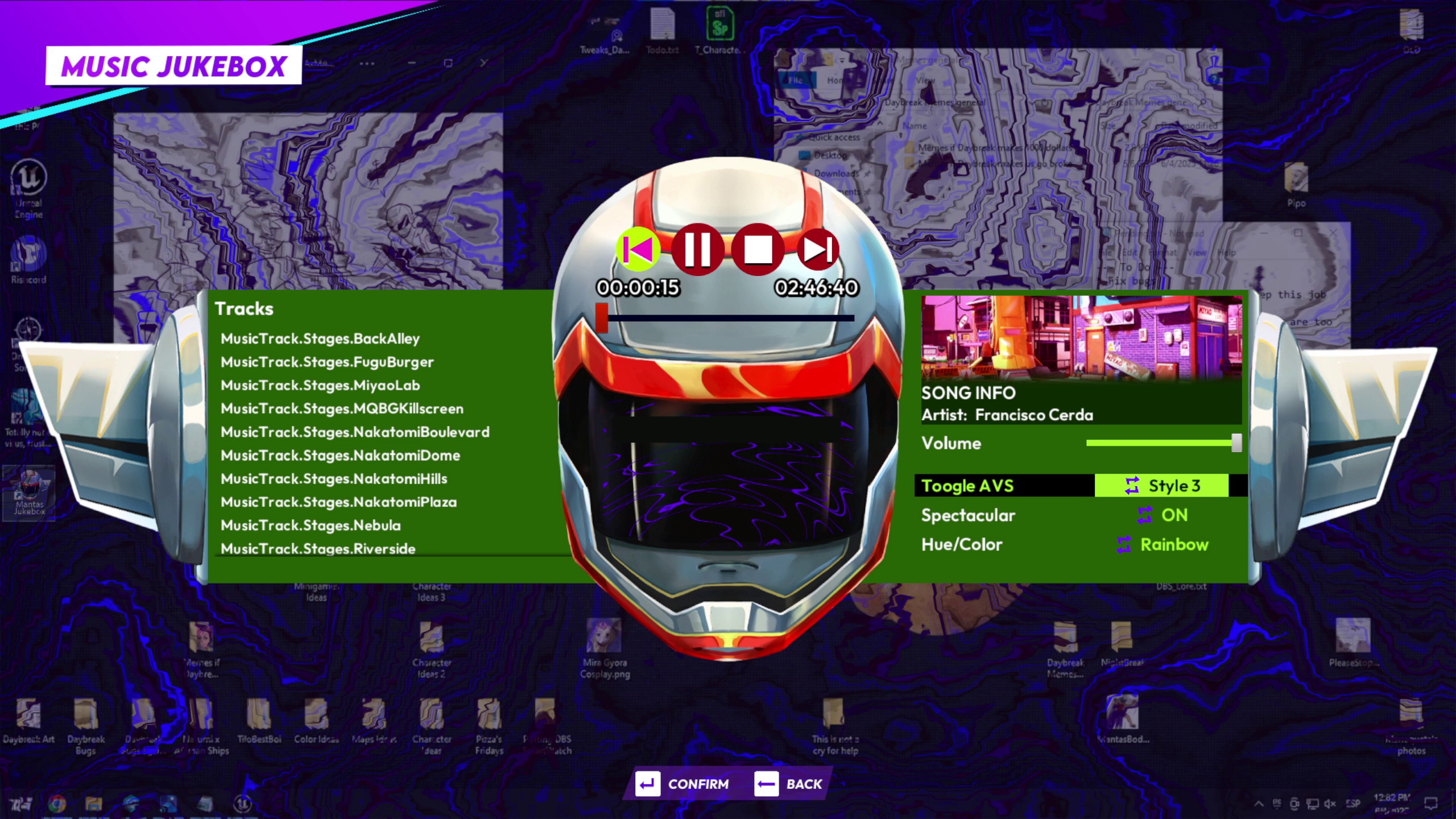 玩家所處的城市 Nakatomi City 有各式各樣的場景,你可以解鎖室外關卡的白天與各種天氣變化,而遊戲也提供兩種不同濾鏡,分別是像素風和 Polydrive 風格。玩家能在個人基地查看收集到的收藏品,例如不同的角色造型和顏色、替換的舞台變化、獎盃和音樂點唱機。此外,遊戲還提供一些小遊戲。