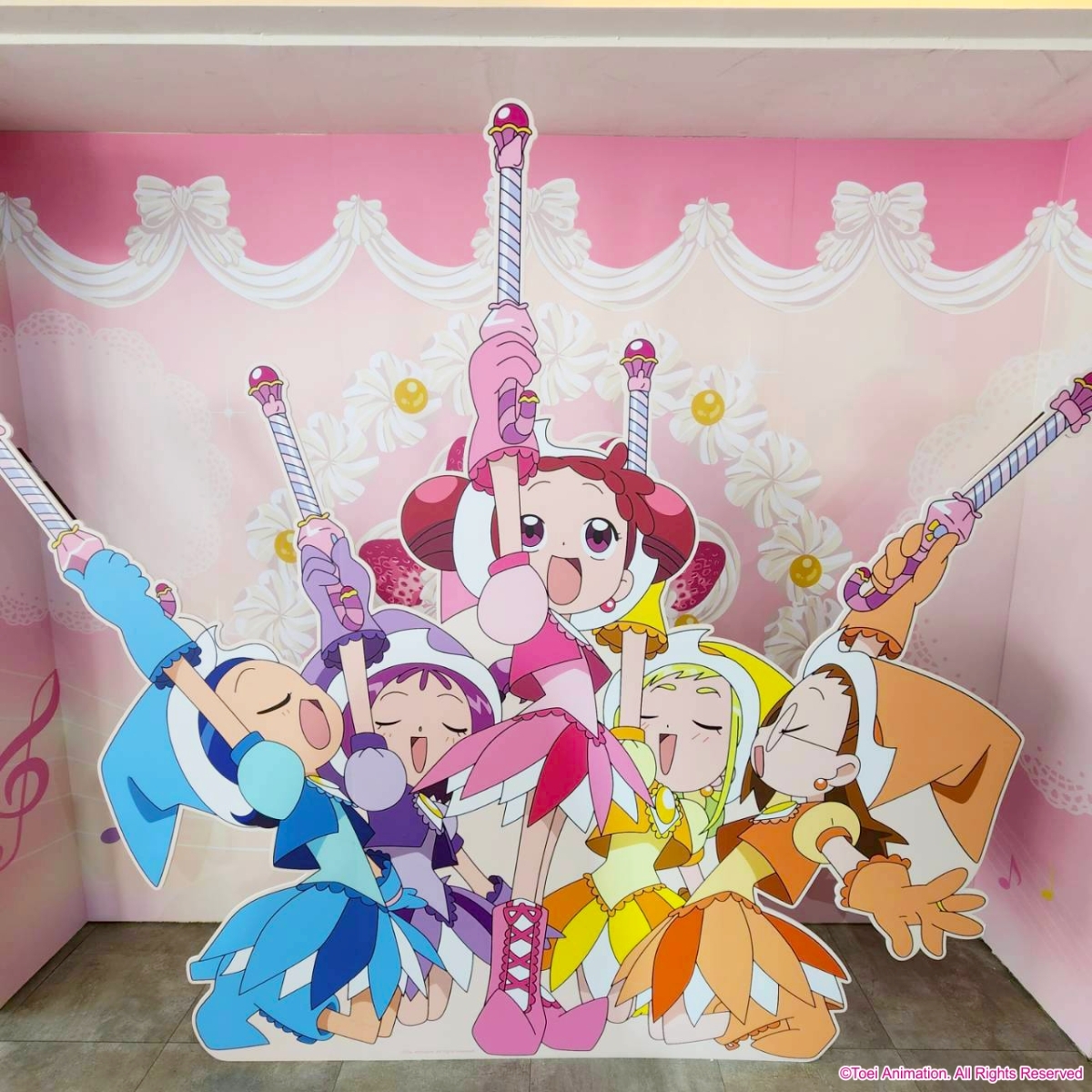 小魔女DoReMi》第三季的世界觀,五位魔女見習生(DoReMi、羽月、小愛、音符、小桃子)等身立牌登場,粉絲們可與喜愛的角色一起合影打卡。餐廳現場還準備了波
