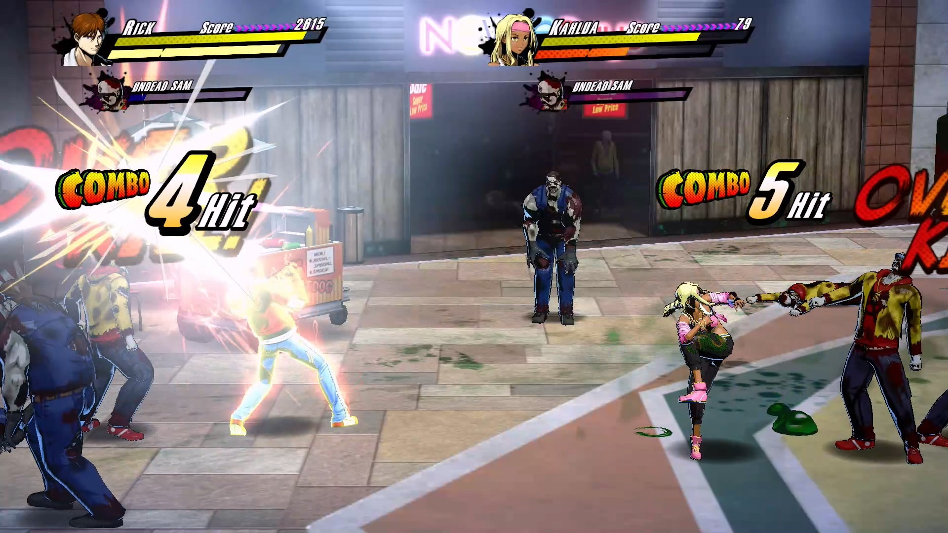 透過輕鬆使出的自動連擊,即便是初學者也能享受充滿爽快感的動作樂趣。反擊、追擊,使用取得的武器進行攻擊,以多樣化的動作來打造出專屬自己的連擊。幾乎所有的動作都能透過衝刺或跳躍取消。妥善運用取消,透過更多的連續攻擊來教訓對手!可透過不同的指令來施展投擲技。像是利用投擲技投擲目標並將周遭的敵人一網打盡,也能夠將其拋向畫面深處,破壞平時所無法觸及的物品。更是能取得道具的好機會!當攻擊命中或是承受攻擊時,都會使「憤怒量表」持續上升。