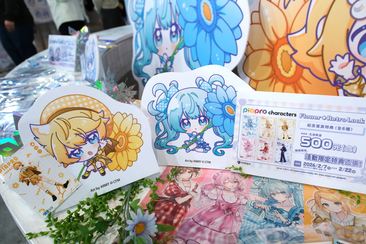 今日展開的初音未來快閃店「SNOW MIKU & Piapro Characters Flower*Retro Look」快閃店,現場除了有全新繪製插圖製作的週邊商品,在外側的開放空間也有等身立牌等打卡拍照點等著跟大家見面。同時,官方表示,現場將特別準備兩個系列的特典,凡單筆消費滿 NT$500 即贈「紀念寫真卡片」乙張。