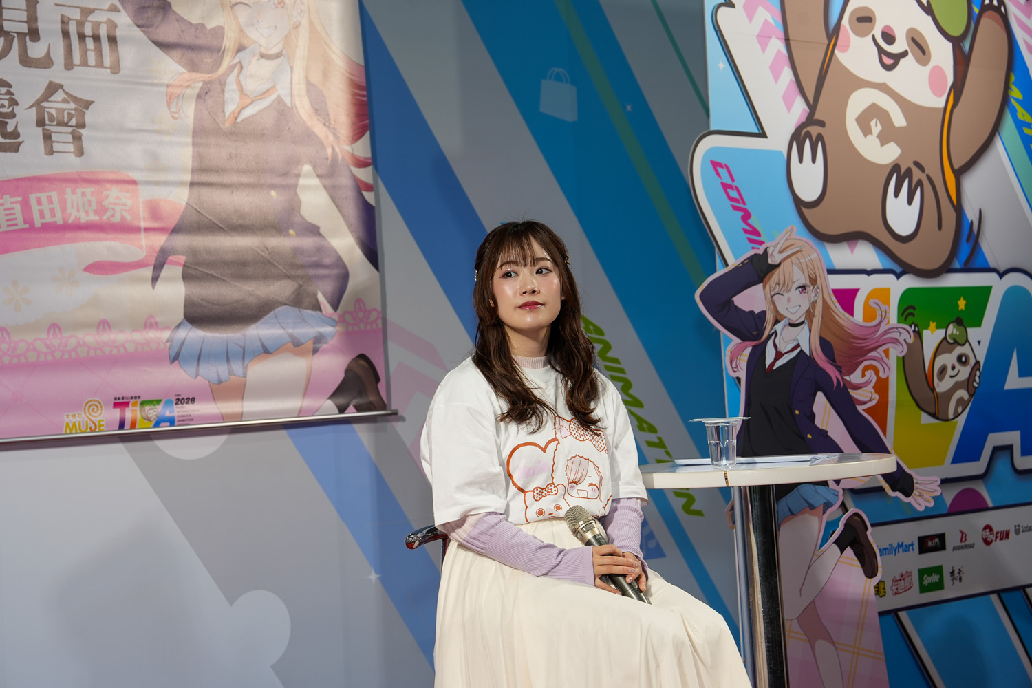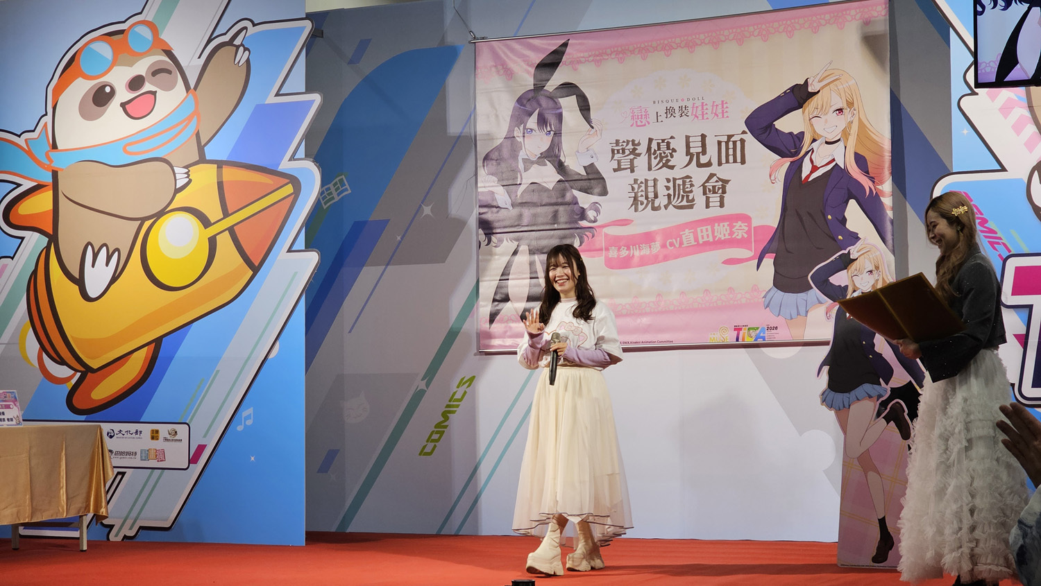 戀上換裝娃娃》女主角「喜多川海夢」聲優直田姬奈來到台北國際動漫節現場,並於 2 月 8 日及 2 月 9 日舉辦聲優見面親遞會,在今日(8 日)率先登場的首場活動中,直田小姐分享了許多配音演出《