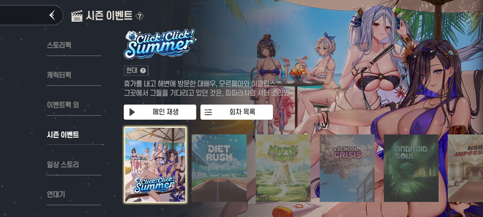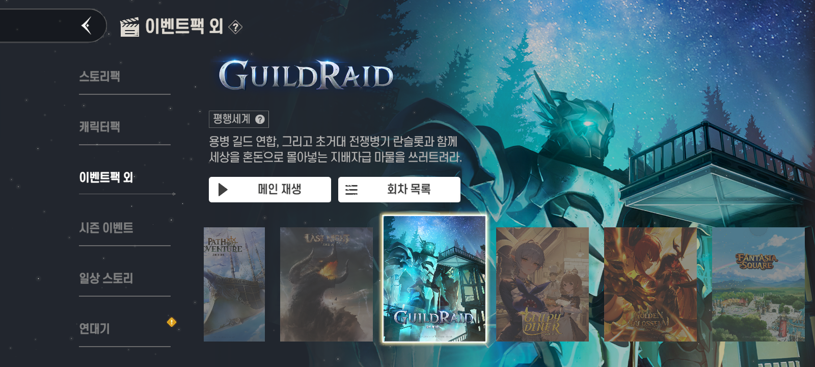 新增可在故事選單中重新觀看過去進行過的賽季活動故事的功能。包含《Windy Cat》、《Idol Fantasm》等,共新增 9 項清單。由於這些故事是引進視覺小說方式之前的,因此可以透過 SD 角色演出來觀賞。此外,公會聯合戰、格魯菲餐廳、黃金競技場、夢幻廣場的釣魚等入場故事,也將新增重播功能。