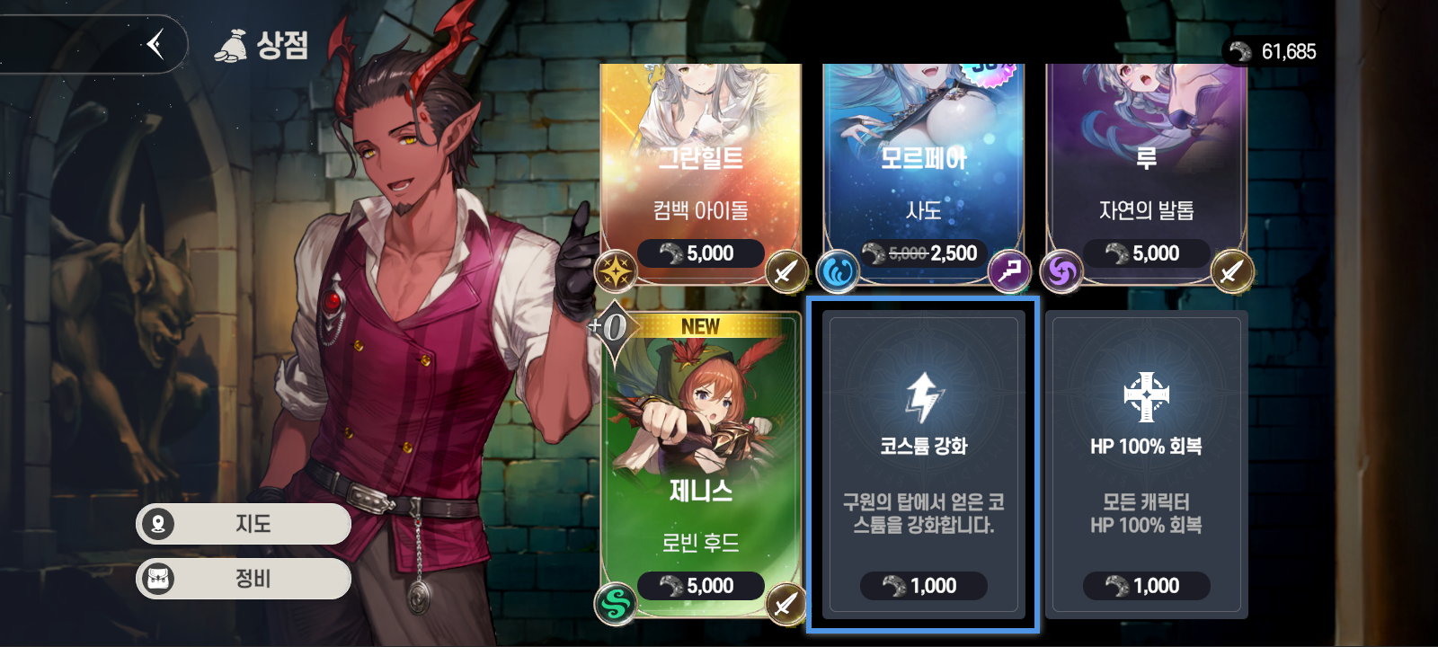 首先是新增服裝強化預覽功能。在服裝選擇、商店以及整備 UI 中,都將新增強化預覽按鈕。服裝強化快顯視窗也將進行改善,讓玩家可一次提升到目標強化數值。商店、活動頁面、獎勵選擇和遺物選擇 UI 中,會加入「地圖」按鈕。其他改善還包括在整備 UI 中可確認服裝的復原方向,取消救贖之塔鑰匙的購買次數限制,以及即便沒有鑰匙也能確認夜世界黑曜石的功能。
