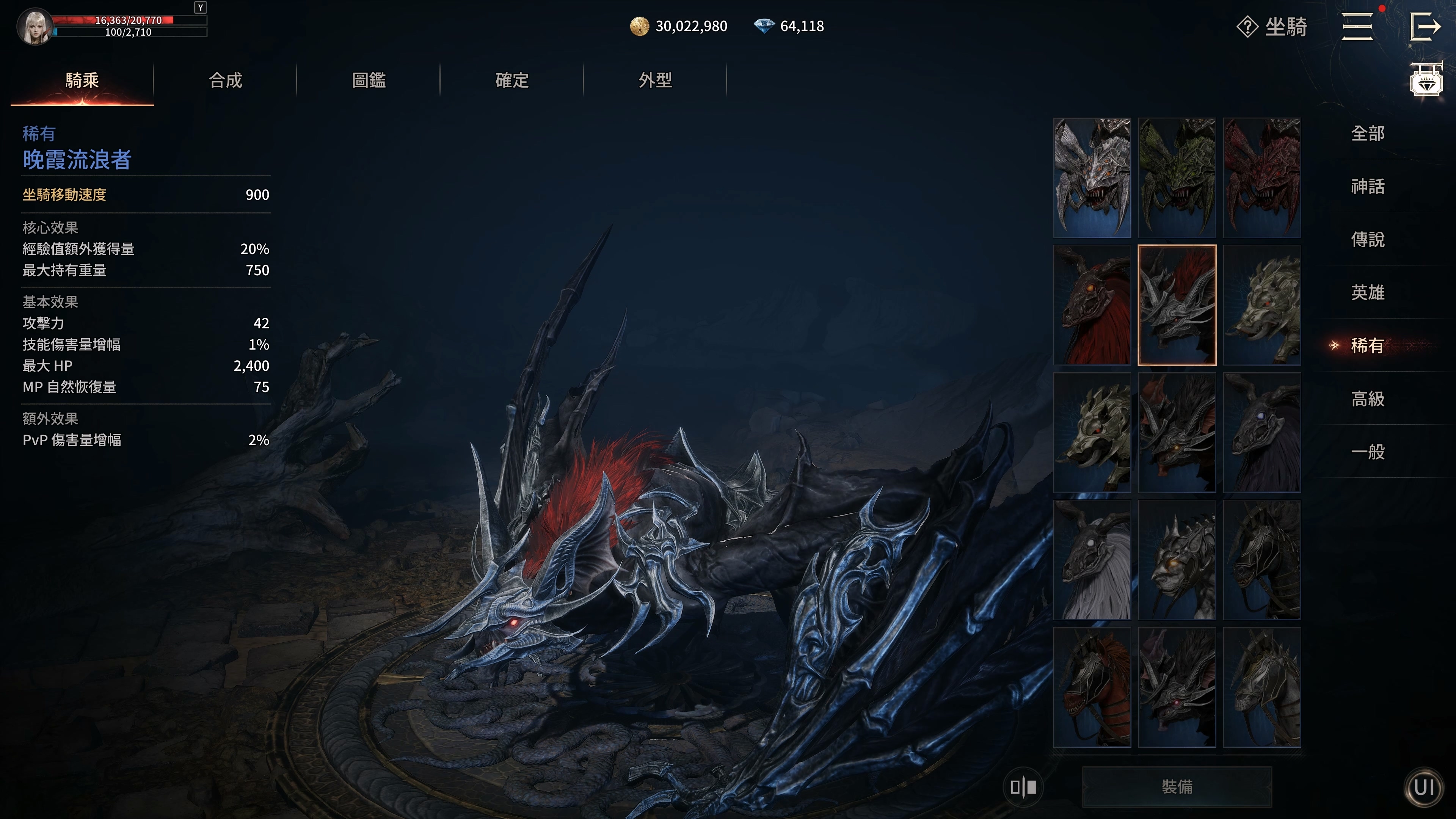 除了代步,坐騎還能提供經驗加成、負重能力等各種效果。並且高階坐騎的移動速度快,在 PVP 追擊或著搶世界 BOSS 時是也相當重要。