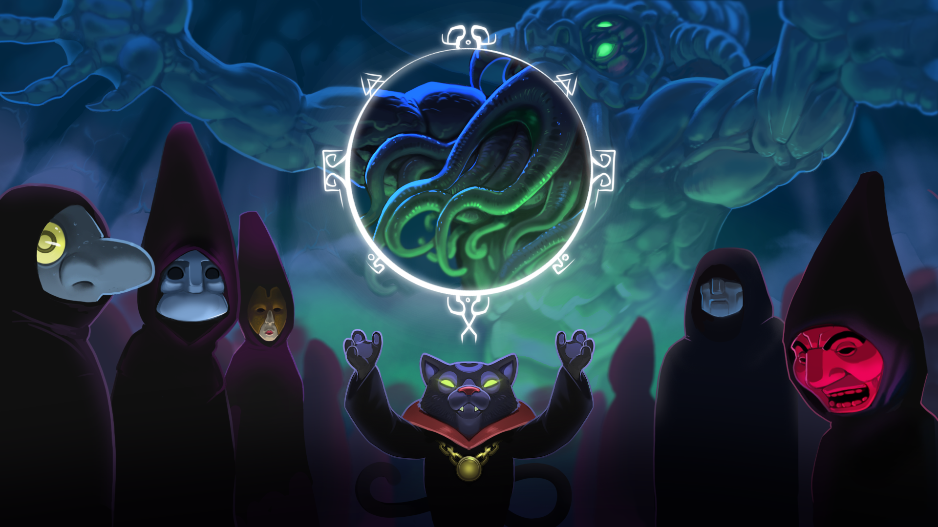 儀式派對》是一款最多支援 4 人遊玩的合作恐怖派對遊戲,以克蘇魯神話中經典的 「邪神召喚」 為主題,玩家將一起(或獨自)執行一項儀式,召喚那些不可名狀的存在。同時,你最大的敵人不只是那些宇宙級的恐怖怪物,還有愛管閒事的鄰居、趕來的警察,以及最致命的「無法按計劃行動的隊友」。