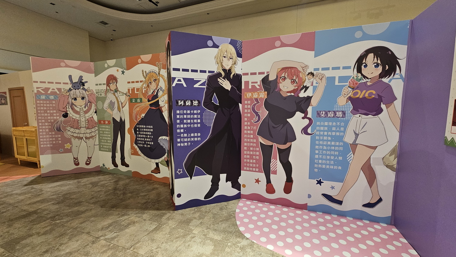 小林家的龍女僕》以療癒可愛氛圍為核心,朵露、康娜等高人氣角色化身主題空間亮點,搭配生活感十足的萌系周邊與拍照打卡裝置,重現異世界與人類共居的溫馨日常。