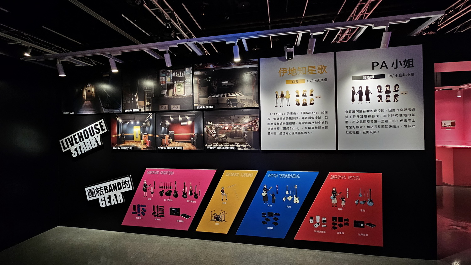 孤獨搖滾!》動畫展共規劃九大特色展區,「小孤獨的衣櫥」是小孤獨通往吉他英雄的道路的起始點,衣櫥內的每張海報、設備,連棉被都完整複製;「STARRY 展演廳」為作品中最重要的音樂聖地,100% 真實還原 live house 場景,從舞台、燈光到音響配置,讓人彷彿親臨下北澤的現場演出;「渴望被肯定的怪物」巨大實體化,整個空間搭配互動影音,各種迷因畫面交錯出現,直接進入小孤獨的腦內幻想世界。最後還有大型多媒體影音室及作者、導演及動畫相關人員簽名色紙展示。