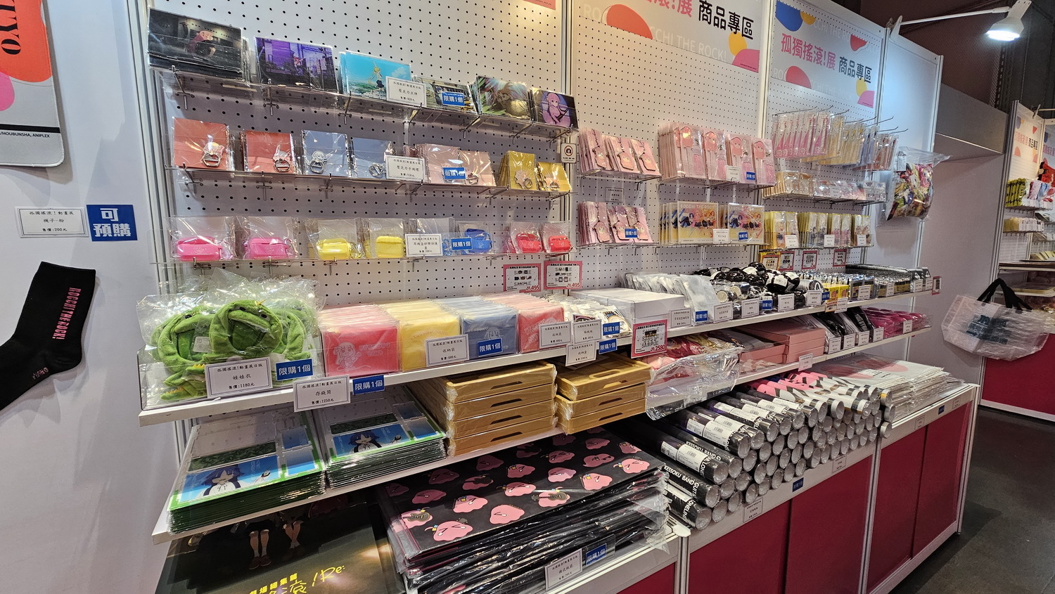 本次展覽也特別引進日本展周邊精品,以主視覺為主軸設計的搖搖壓克力立牌、壓克力版畫、B2 海報,還有吃草存錢筒、承認欲求怪獸娃衣、芒果收納箱等。本次展覽更特別繪製台灣專屬圖案,將台灣在地特色珍珠奶茶、芒果冰、紅白手提袋融入設計,電競滑鼠墊、軋型抱枕、絨毛玩偶、角色胸章組等,各種獨具特色又豐富多樣的限定周邊商品都在此登場。現場還有收藏卡及拍貼機,小孤獨本次也將展現顏藝新高度,還有角色系列。現場消費滿指定金額,還可獲得展限定專屬紙袋。
