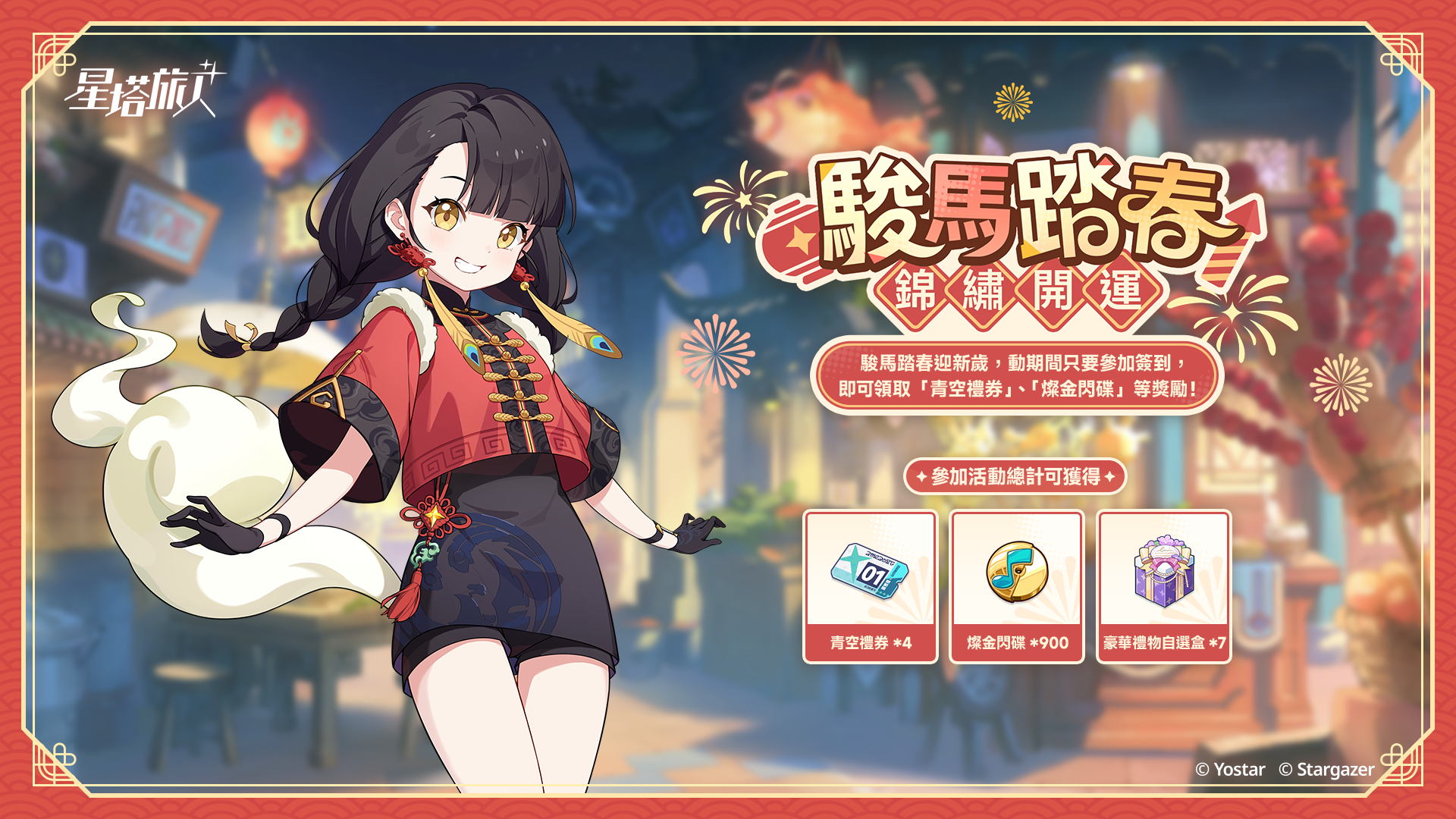 而遊戲內目前現正推出全新 5 星旅人「緋春柯洛妮絲」和新春活動「煙火綺麗尋春意」,受到璟麟的邀請,換上新裝的緋春柯洛妮絲正在蒼梧城享受假期,體驗別樣的生活氣息。緋春柯洛妮絲是均衡定位的地屬性角色,隨身攜帶的各式藥劑為戰鬥提供多樣可能性。魔王大人還能透過簽到活動獲得包括青空禮券、燦金閃碟、豪華禮物自選盒等特別禮物。節日期間還可前往遊戲內,傾聽少女們的甜蜜心聲和新春祝福。