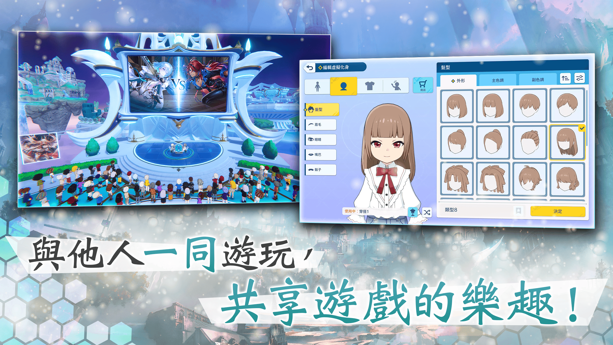闇影詩章 樂園」中,玩家可操控虛擬化身在線上空間自由移動,並在廣場與其他人進行對戰,或是與夥伴們一同創立公會齊聚同樂等,能夠透過各式各樣的遊玩方式體驗多種遊戲樂趣。