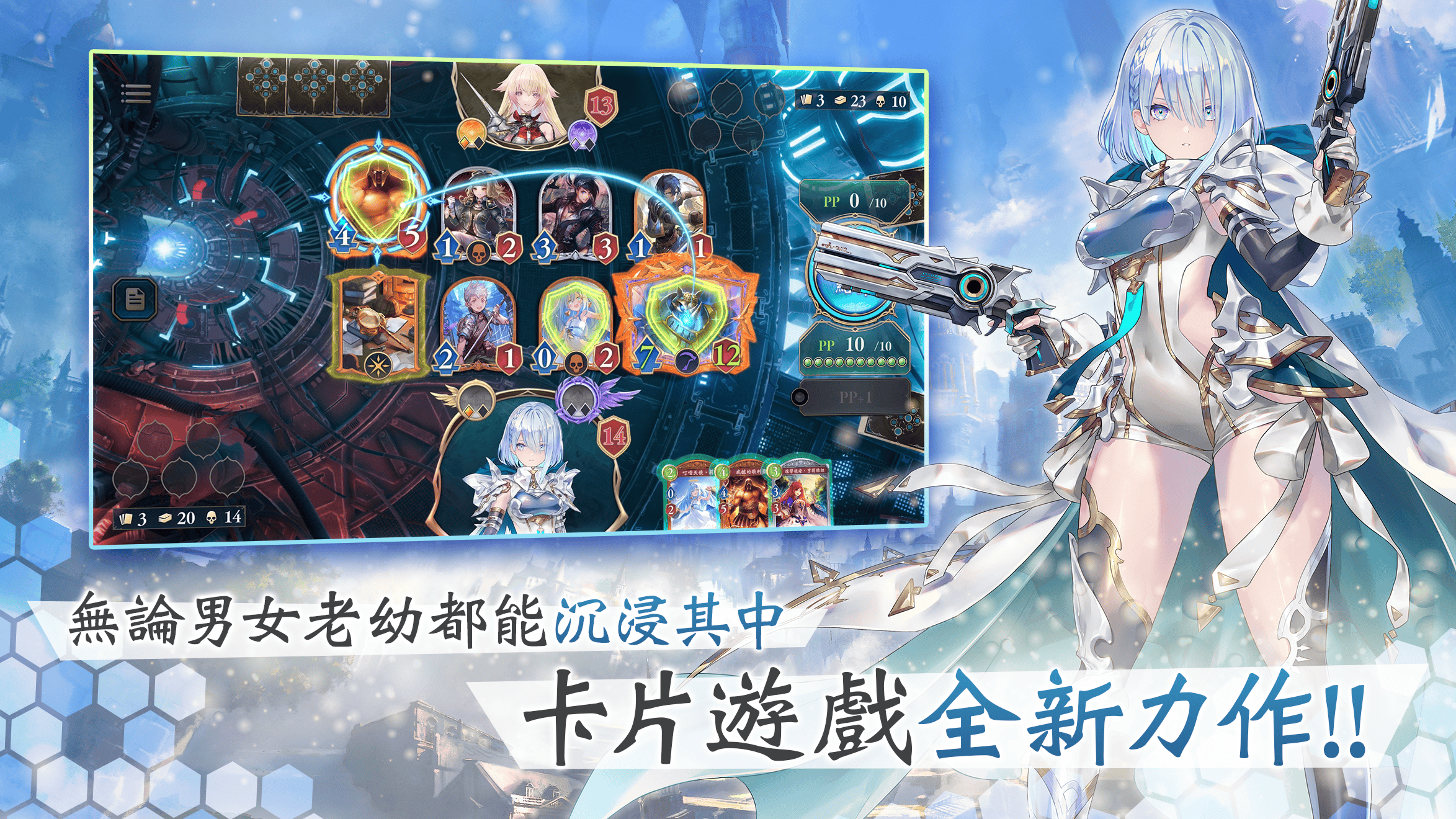 遊戲中,無論是誰都能編制專屬於自己的牌組,並透過線上對戰的方式,在精緻的插畫及華麗的特效所點綴的卡片對戰中,輕鬆享受卡牌遊戲的樂趣。在「