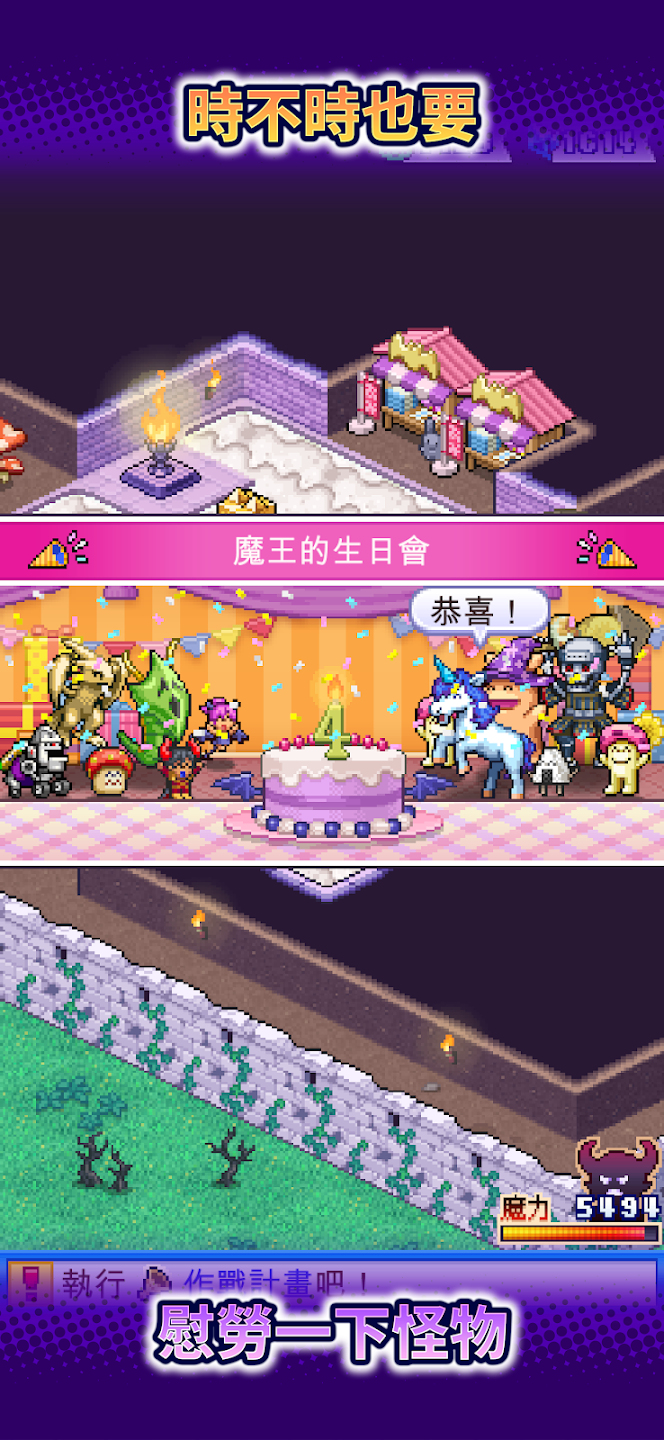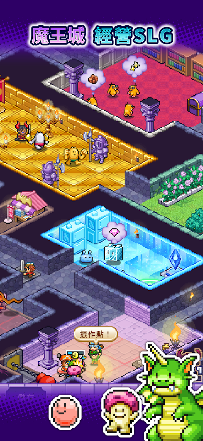 魔王城物語 》是由老字號模擬經營遊戲開發商開羅遊戲(Kairosoft)所打造的迷宮經營模擬遊戲,玩家需要將一座位於邊境的荒廢城堡打造成恐怖的魔王城,並將個性豐富的怪物們納入麾下,迎擊逼近城堡的冒險者。