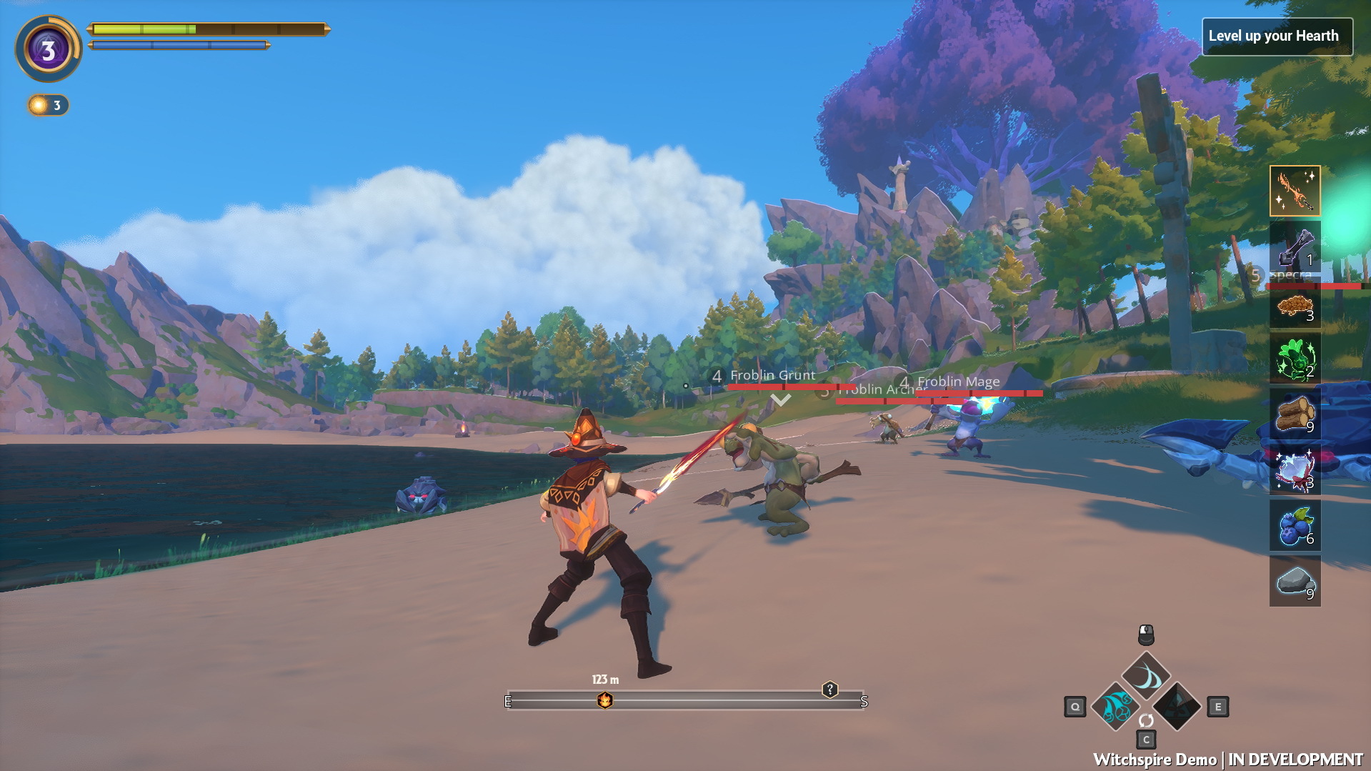 巫師之塔》試玩版中,玩家可與最多三名好友組隊,一同踏上充滿奇蹟的起始島嶼,透過基礎巫術砍伐森林、對抗魔法生物,並親手打造屬於自己的第一座魔法小屋。