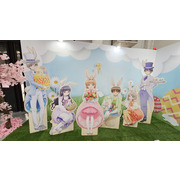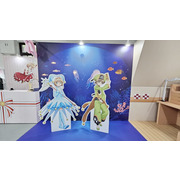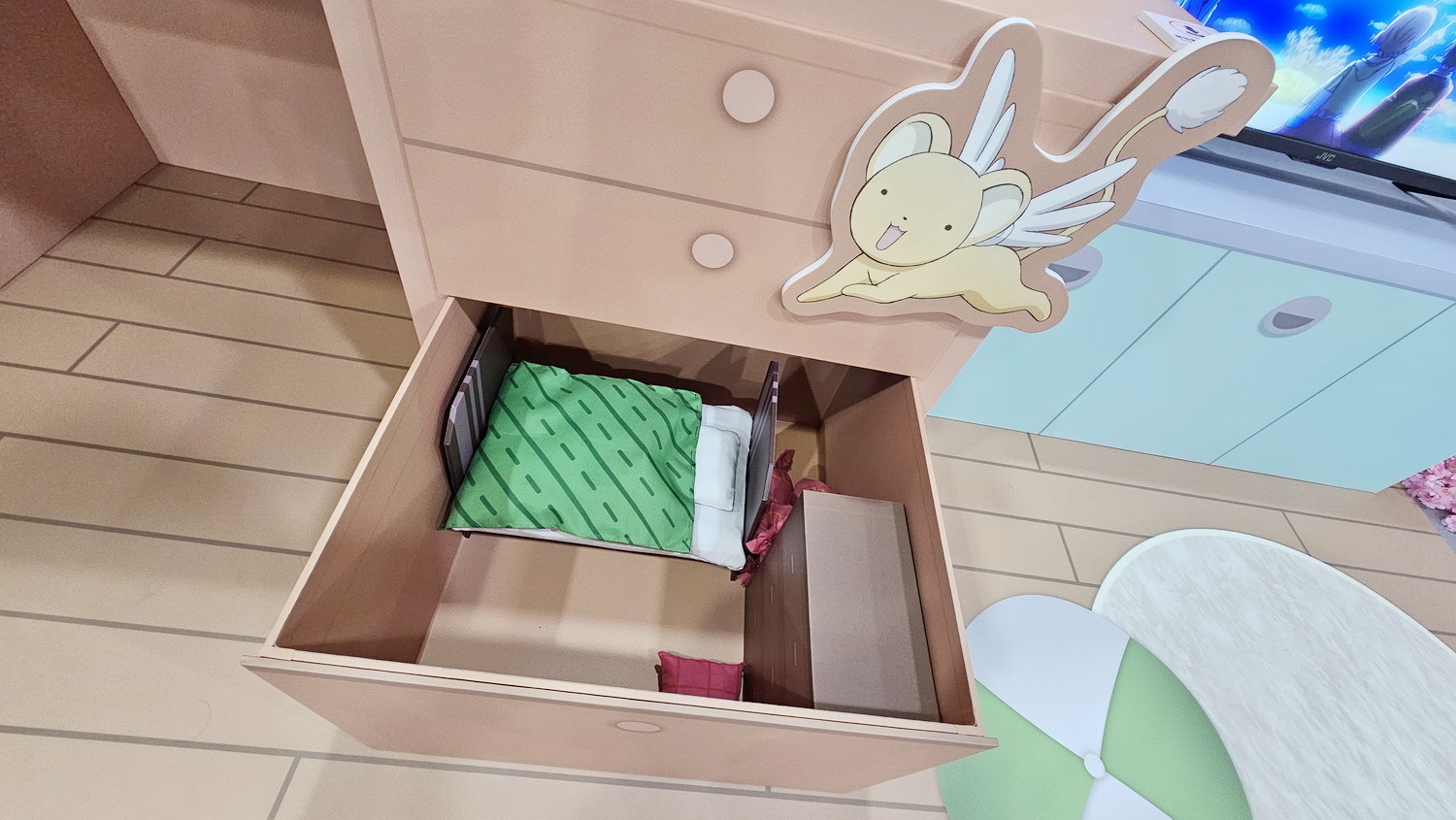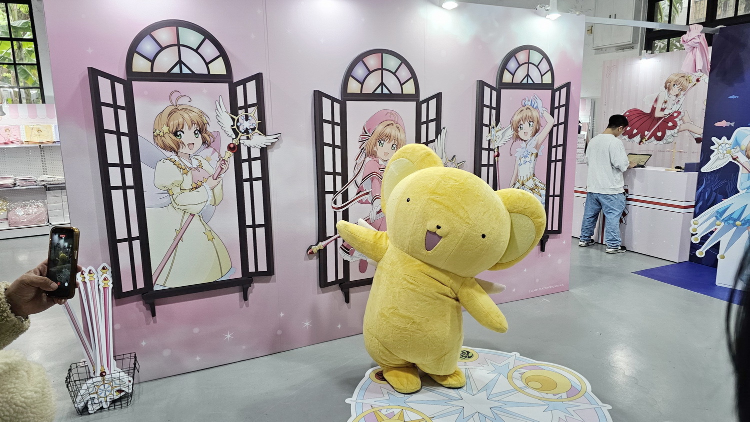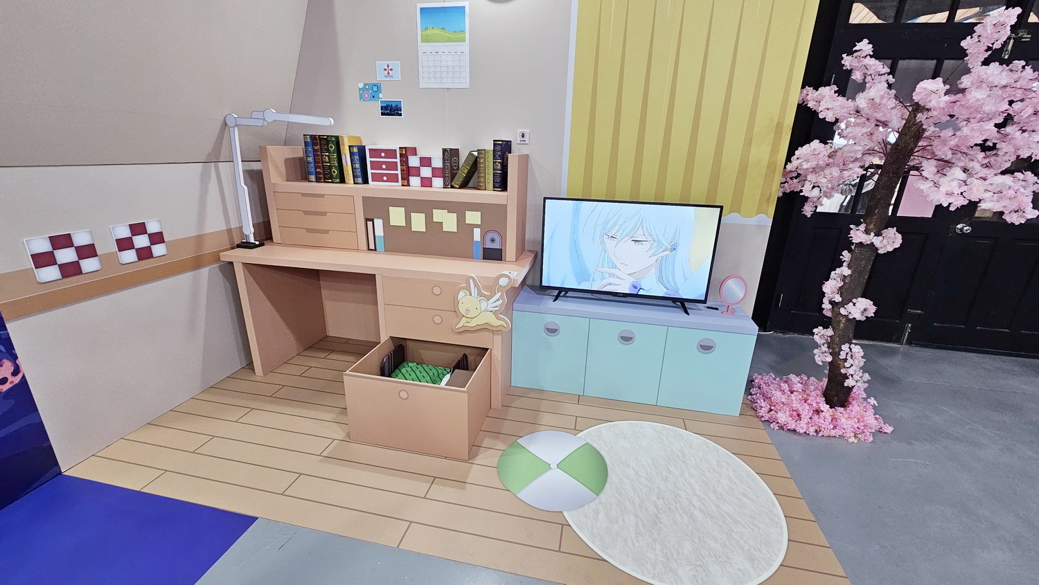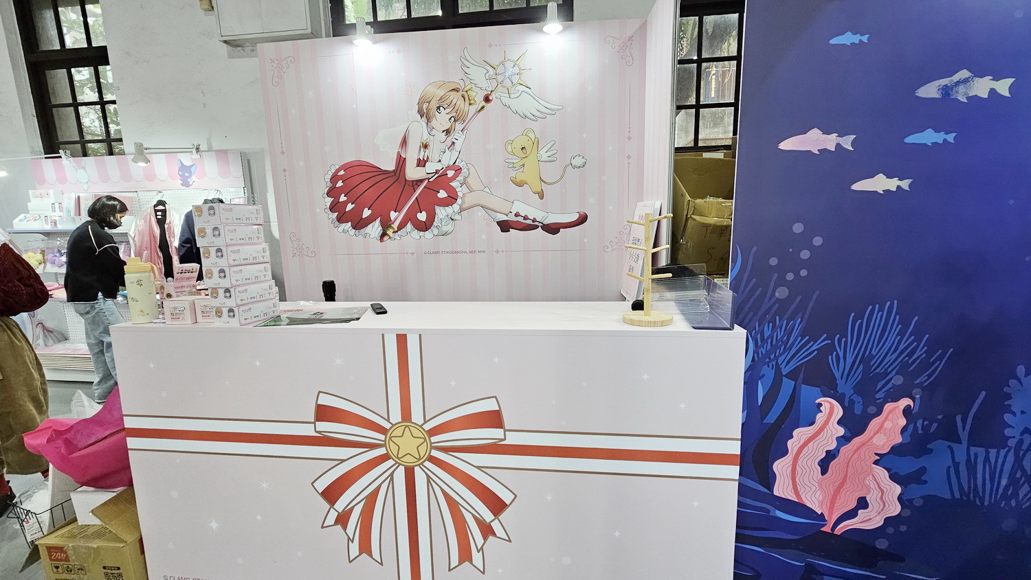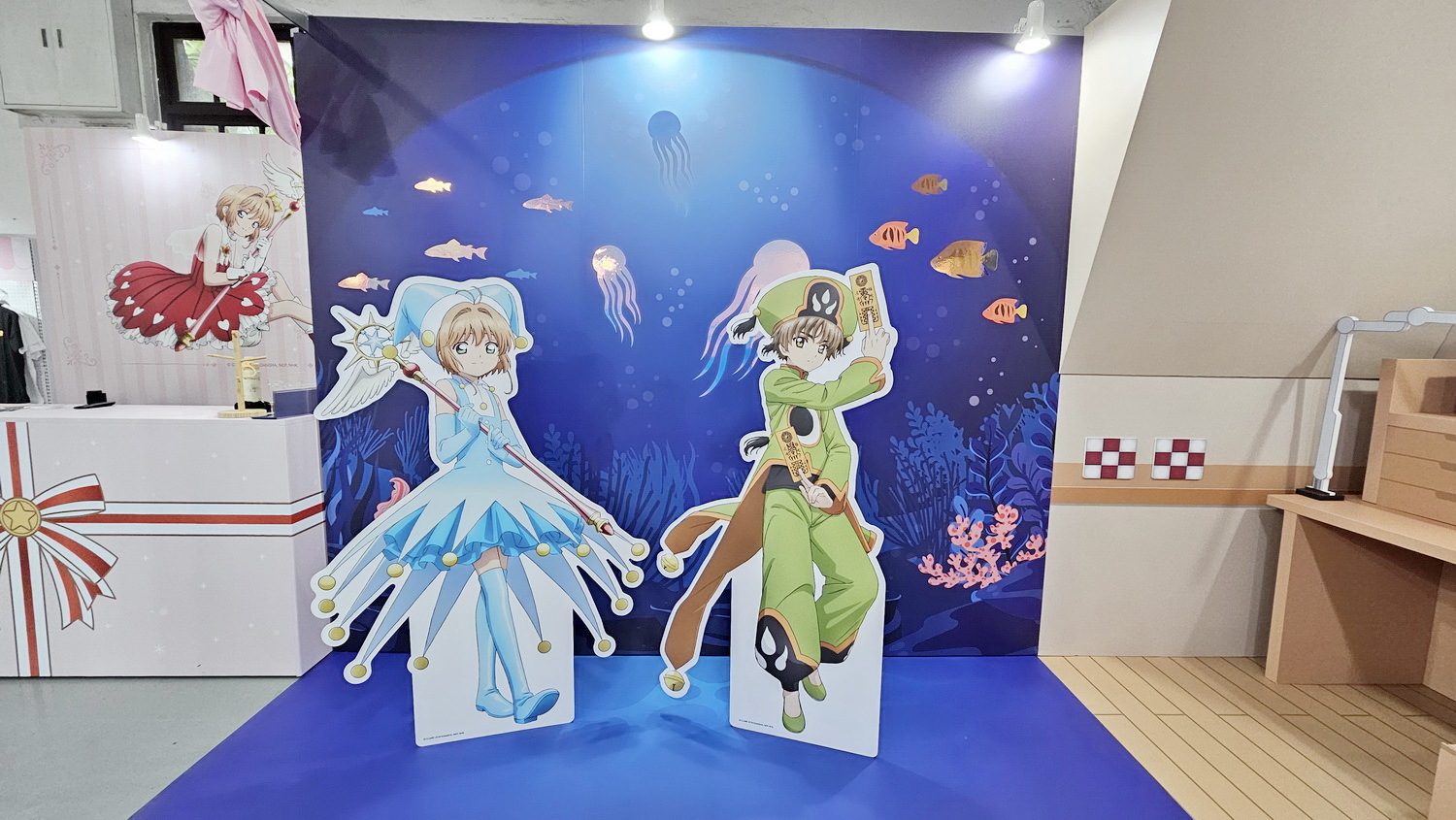 快閃店打造多處動畫經典場景,讓人彷彿走進故事中的某個片刻。包含 「小櫻的房間」,特別製作小可睡覺的抽屜,還原小可的專屬小天地;「小櫻與小狼一同前往的水族館」,以靜謐藍色調營造兩人回憶中的溫柔氛圍;以及 「友枝中學的花園穿廊」,重現小櫻、小狼與知世經常討論事情的日常場景。現場同時設置 「透明牌裝置」,可實際走入其中拍照,彷彿自己也成為牌面的一部分,可穿上春天氣息的服裝,搭配透明卡牌框,留下專屬於自己的紀念畫面。本次快閃店更特別展出復活節主題繪圖,角色們換上節日服裝,以柔和色彩描繪春天氣息。