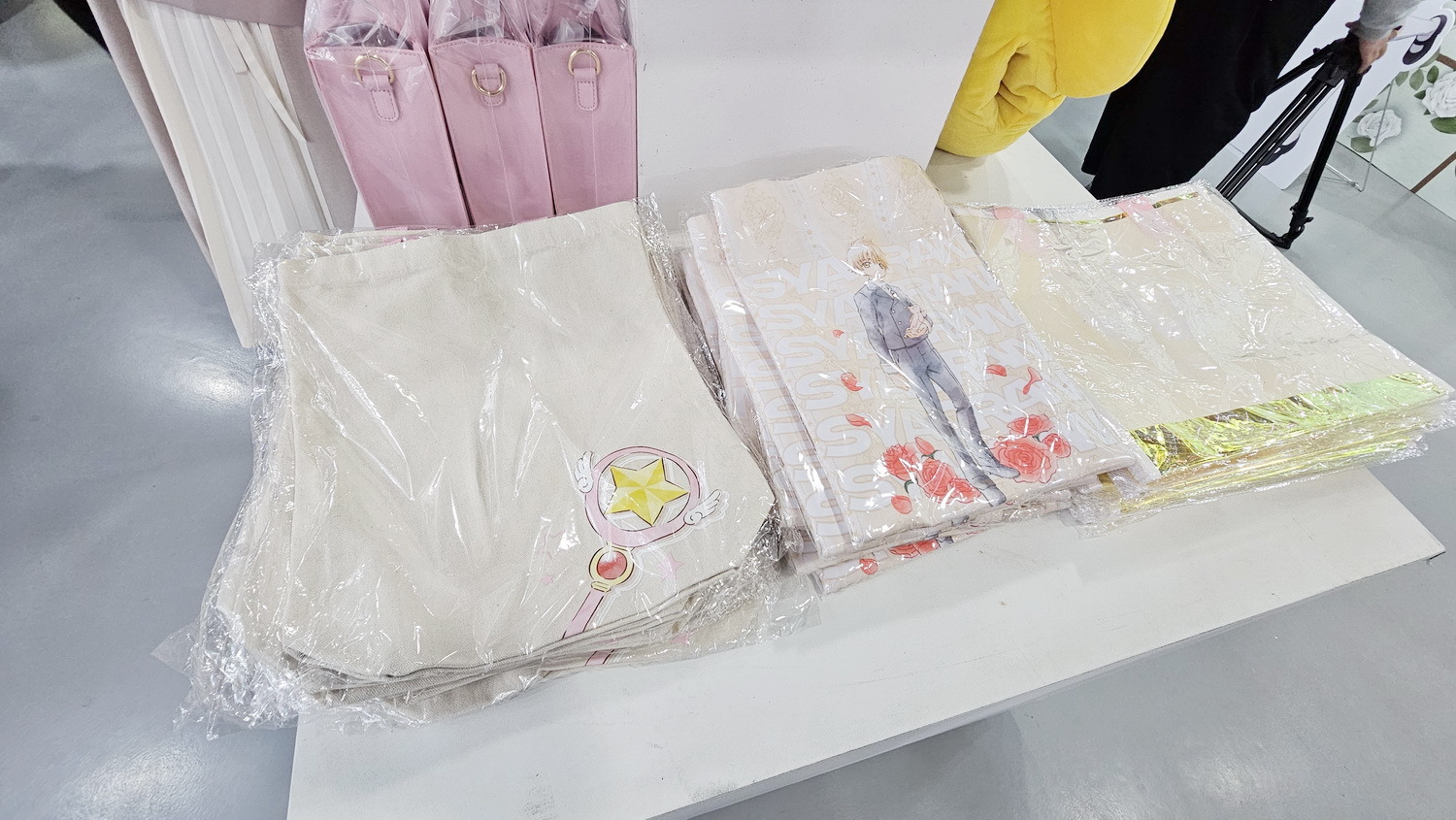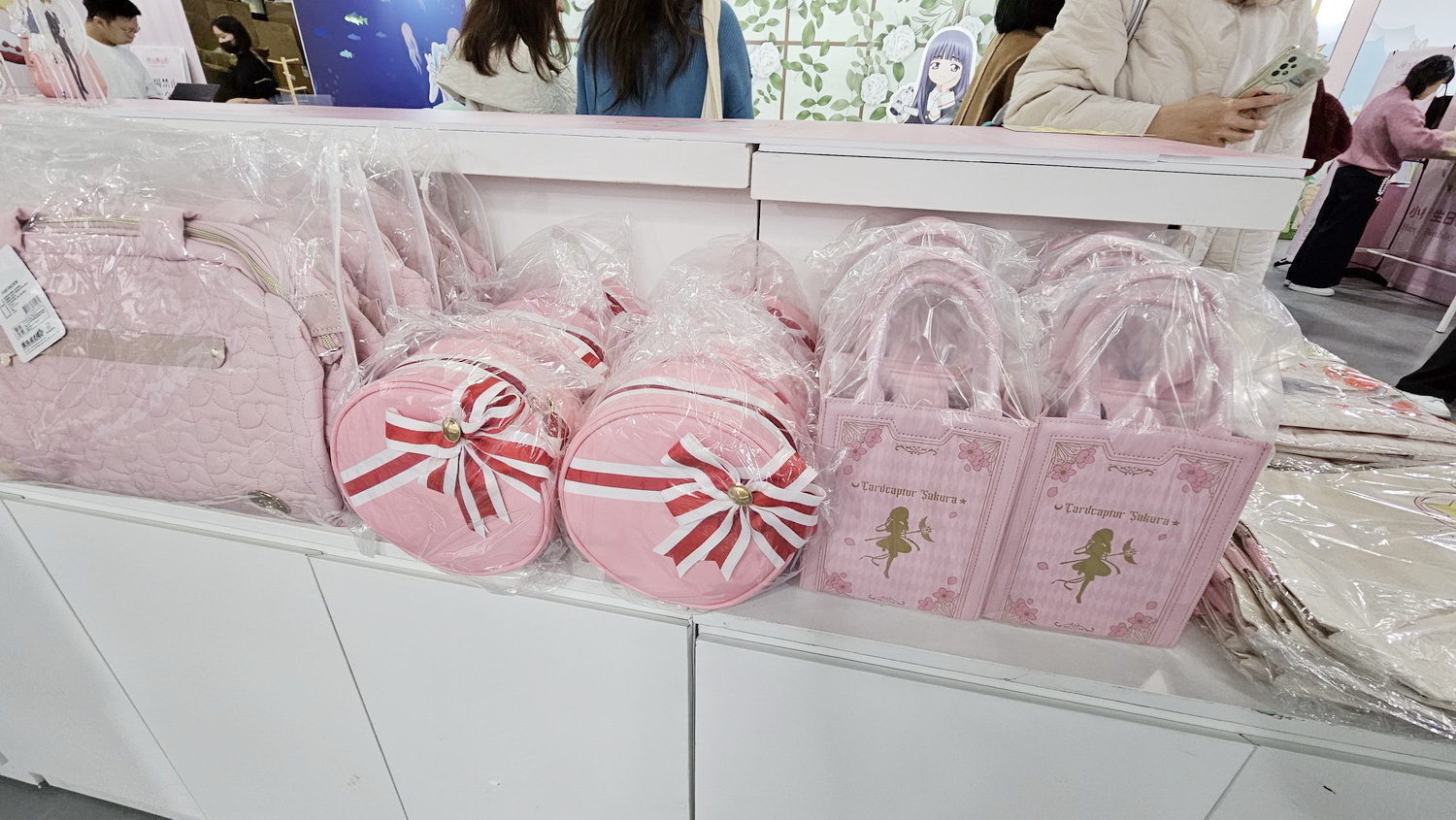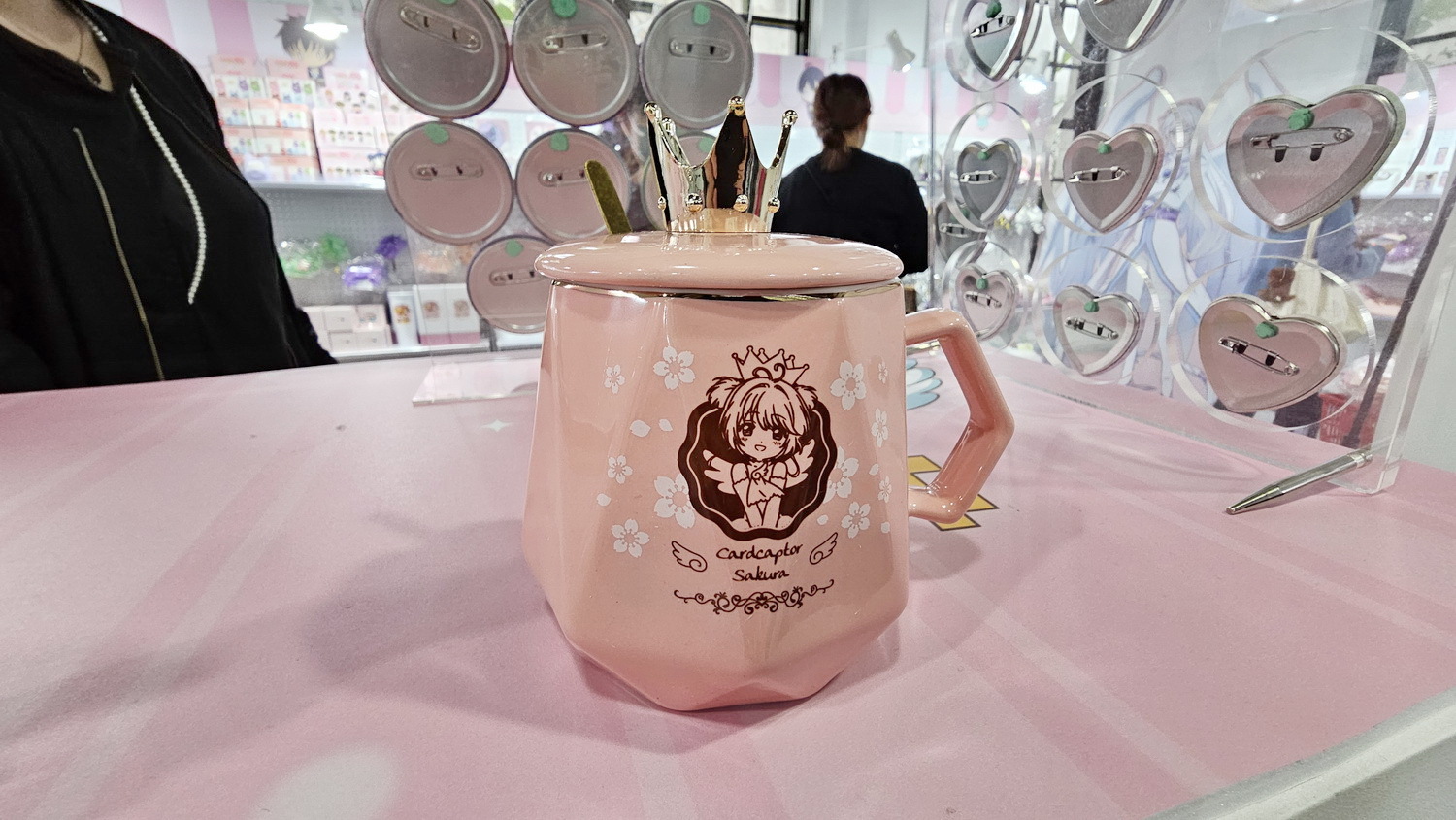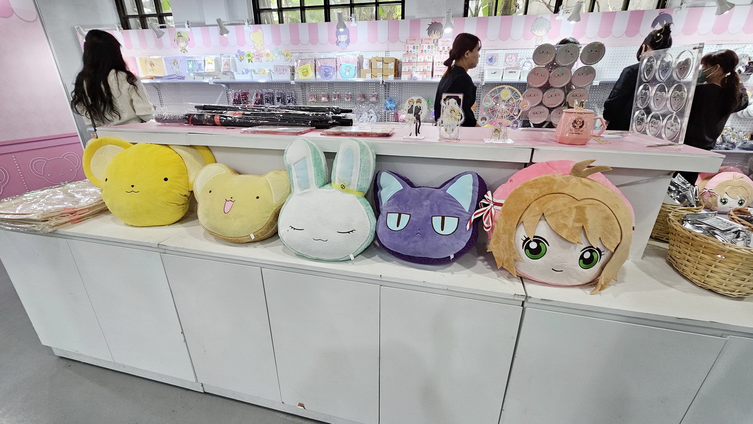 周邊部分也推出多款限定商品,包含愛心造型盲抽徽章(10 款)、可轉動的摩天輪造型壓克力立牌、小可卡套、A4 橫式資料夾(4 款配色,搭配小櫻不同戰鬥服)、銀箔材質郵票造型明信片,以及透紗刺繡 T 恤、短版 T 恤與多款摺疊購物袋。凡於快閃店內消費滿 999 元,即可以 129元 加價購青蛙裝小可造型大紙袋。