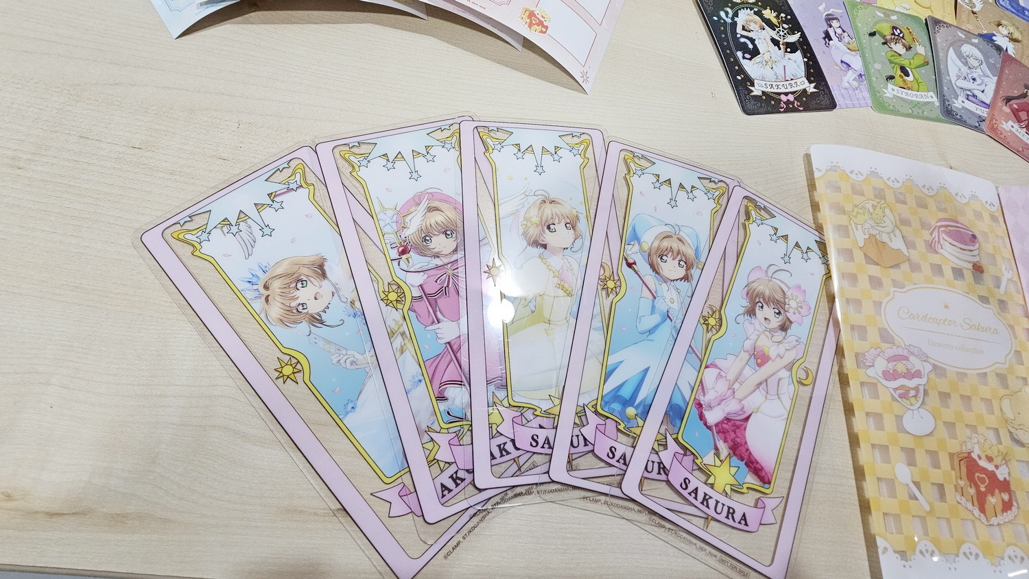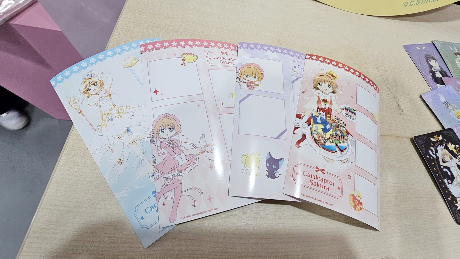 本次快閃店同步推出限定滿額贈系列,將小櫻的經典造型與透明牌意象結合,打造輕透、細緻的收藏單品。滿額贈之一為壓克力透明牌,共推出五款設計,精選小櫻多套經典服裝造型,搭配透明牌輪廓與清透材質呈現。另一款滿額贈為 直式票卡夾,共兩款設計。其中一款以小櫻兩套可愛服裝為主視覺,展現輕盈氛圍;另一款則為甜點主題款式,以嫩黃色為基調,營造溫柔可愛的日系甜點風格。