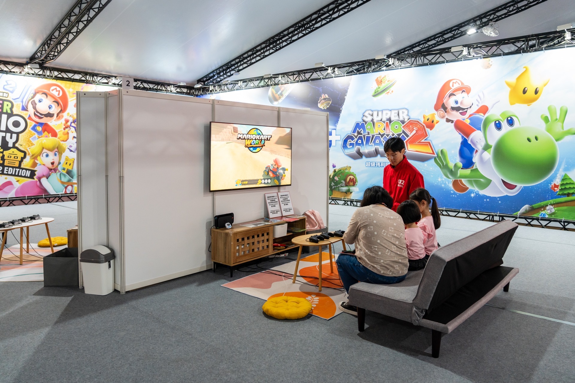 除各燈區展示外,現場還有「Nintendo Switch 2」遊戲體驗區,特別規劃親子體驗區與一般體驗區兩種空間。親子體驗區讓親子族群能在較為舒適、友善的空間中輕鬆享受遊戲時光;一般體驗區則提供多元的遊戲內容選擇,讓不同年齡層都能依照自身喜好進行遊戲體驗。