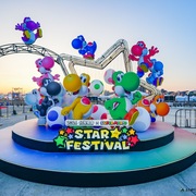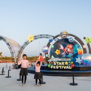 超級瑪利歐銀河拍照點。耀西拍照點可以看到耀西以不同顏色與姿態亮相,營造活潑繽紛的拍照空間;碧姬公主星星拍照點則透過閃耀的燈光效果與無敵星的拱形燈飾,呈現出明亮且夢幻的氛圍;