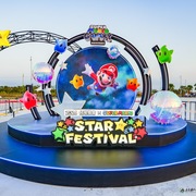 超級瑪利歐銀河拍照點以宇宙與圓環燈光結構為背景延伸,帶出銀河冒險的魅力。