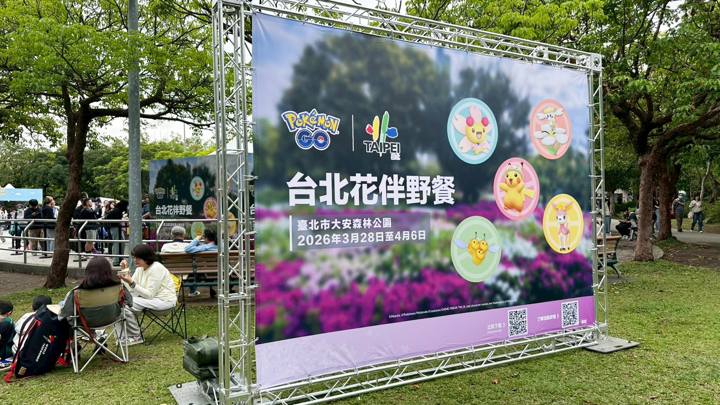 觀傳局表示,民眾可以把握 29 日,現場還有多項活動可以免費參加,也設有《Pokémon GO》專區,民眾只要於攤位完成指定任務,就有機會獲得限量贈品,還可體驗新推出的《Pokémon Pokopia》遊戲,機會難得,千萬不要錯過!4 月 6 日期間,還有大型皮卡丘氣球與《Pokémon GO》打卡裝置,玩家們只要在公園裡打開《Pokémon GO》手遊,就有機會遇見這次活動主題的寶可夢,包括「戴著花帽的皮卡丘」、「四季鹿春天的樣子」,另外也有遊戲的加碼獎勵!