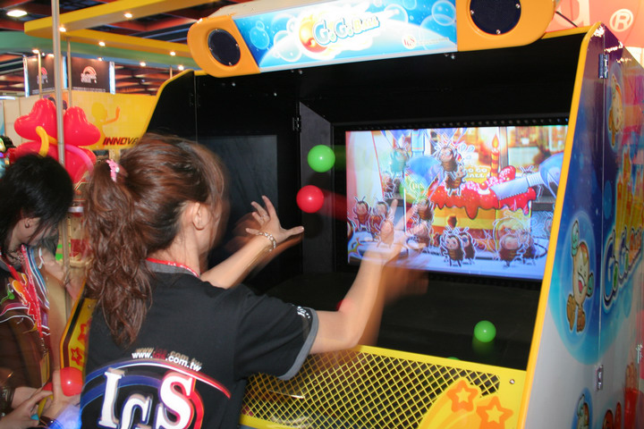| Show Girl 指導遊玩《太鼓亞洲版》 | 搞笑誇張的《百獸大戰》 | 許多廠商都有推出的擲球體感機檯 |
