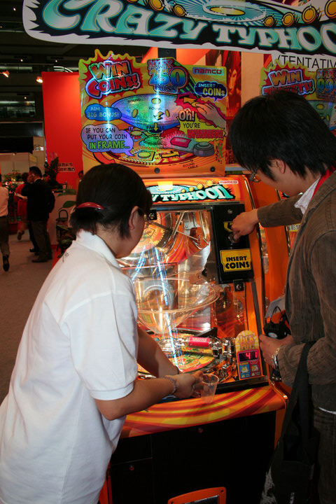 《Crazy Typhoon(名稱暫定)》是本次 NBGI 現場所展出的唯一一台非遊戲類的博弈娛樂機檯,如同遊戲名稱的「颱風(Typhoon)」般,透過特殊的漏斗狀設計讓玩家所投入的代幣邊旋轉邊滾到下方的輪盤上,並依照代幣落下的位置來計算積分與賠率。