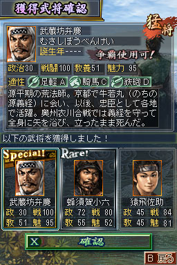 支援 Wi-Fi 連線功能,玩家只要連上網際網路並遊玩下載模式或群雄爭霸模式,就可以可獲得源義經、安倍晴明等特殊武將,還可以與朋友交換。