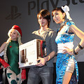 ![兩人以中文向台灣玩家問好]() | ![現場示範最新開發成果]() | ![與超級忍者龍隼合影]() |