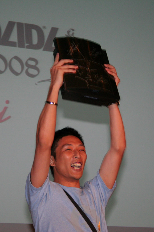 | 重頭戲的老蛇模型 | 幸運獲得簽名主機 | 興奮的高舉主機大聲歡呼 |