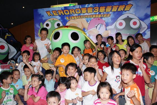 超劇場版 KERORO 軍曹 3《KERORO VS KERORO 天空大決戰》慈善首映會昨日(11 日)於威秀影城舉行,主辦單位曼迪傳播與家扶中心希望透過老少咸宜的 KERORO 軍曹動畫電影,喚起民眾對小朋友的愛護與關懷。
