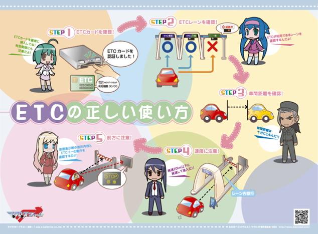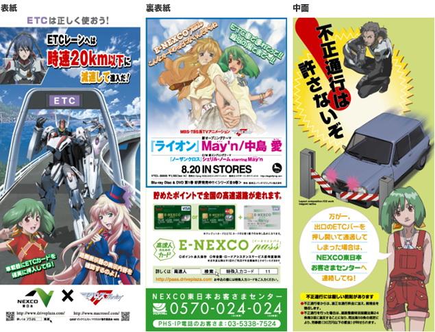 此外由日本 NEXCO(高速道路株式會社)東日本關東分公司所宣導的 ETC 使用方法海報,也找來《超時空要塞 F》中的人物代言。從 8 月開始至明年(2009 年)3 月,在日本關東區域的高速公路及其相關單位,或許都可以看到這一系列的宣傳單、海報及看板。