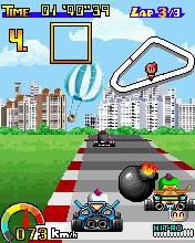 《炸彈超人賽車》學園大混戰,這次不賣豆腐也不走格子,而是要完美過彎、俐落甩尾爭第一。遊戲中共有五種賽道、四種車款可攻略,玩家必須使出渾身解數應戰,一邊提防攻擊,一邊利用道具用力使「炸」,才能在這逗趣刺激的比賽中獲得勝利。