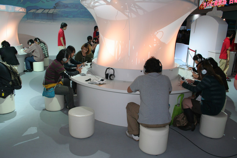 現場以鮮豔明亮的童話風佈景設置了如同兒童遊戲區般的試玩區,讓參觀者輕鬆坐在沙發或椅子上試玩遊戲,寬闊開放且明亮的空間可說是全場氣氛最輕鬆的試玩區。