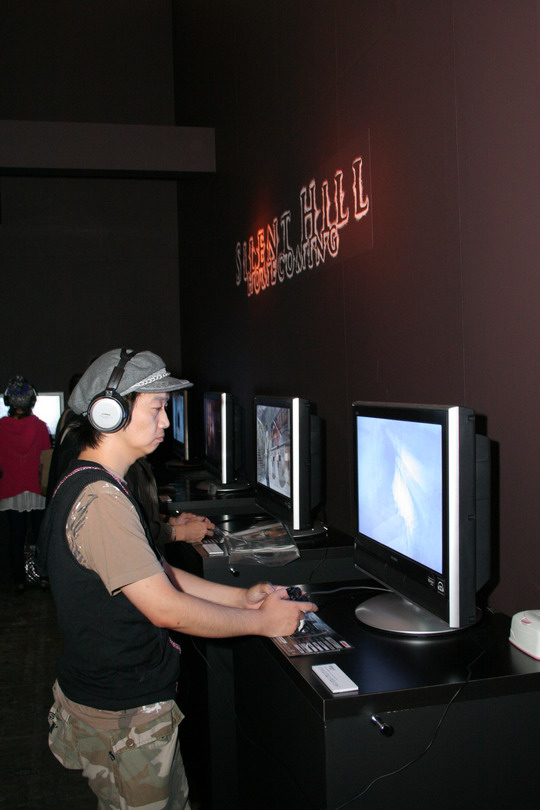 《沉默之丘:歸鄉》則剛好是相反的風格,這款 KONAMI 恐怖遊戲代表作次世代最新作,本次是以烏漆抹黑的半封閉試玩區提供試玩。系列作特色的濃霧雜訊與變異世界帶來混沌不明的未知恐懼感,現場並持續播映有著刺耳警報聲的宣傳影片,壓迫感十足。